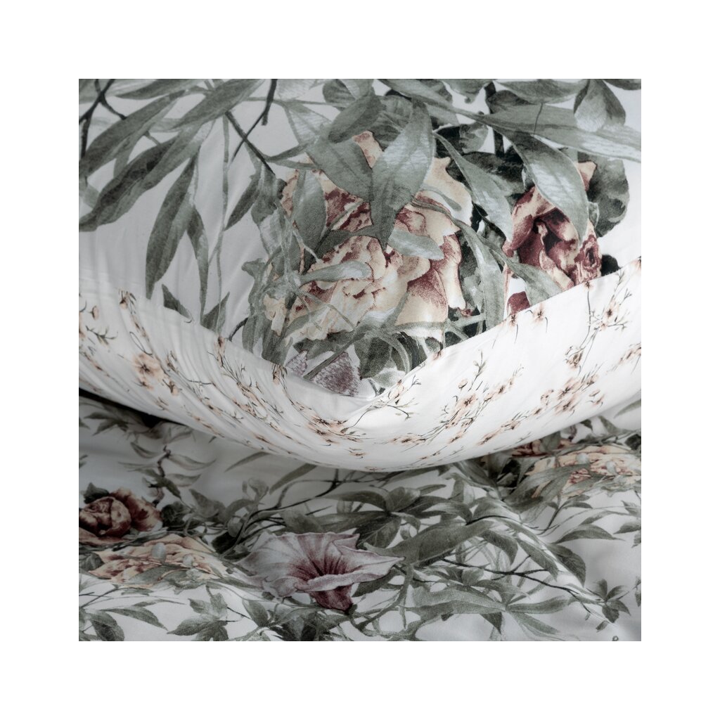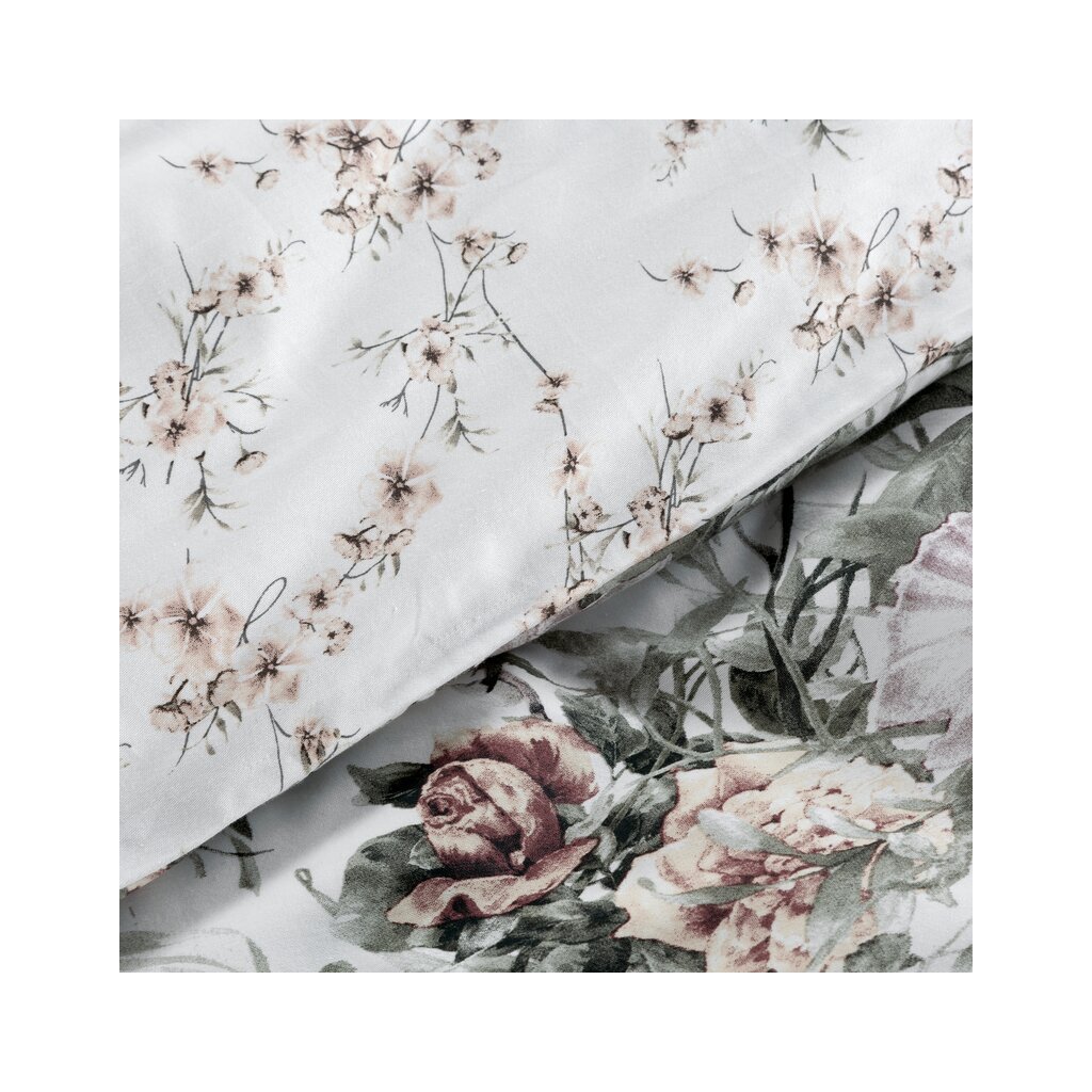 Nyomtatott pamut szatén ágyneműgarnitúra Szélesség: 220 cm, Hossz: 200 cm, Szín: fehér, Súly: 125 GSM, Összetétel: szatén, 100% pamut. A csomag tartalma 1 db 220 x 200 cm, 2 db 70 x 80 cm.