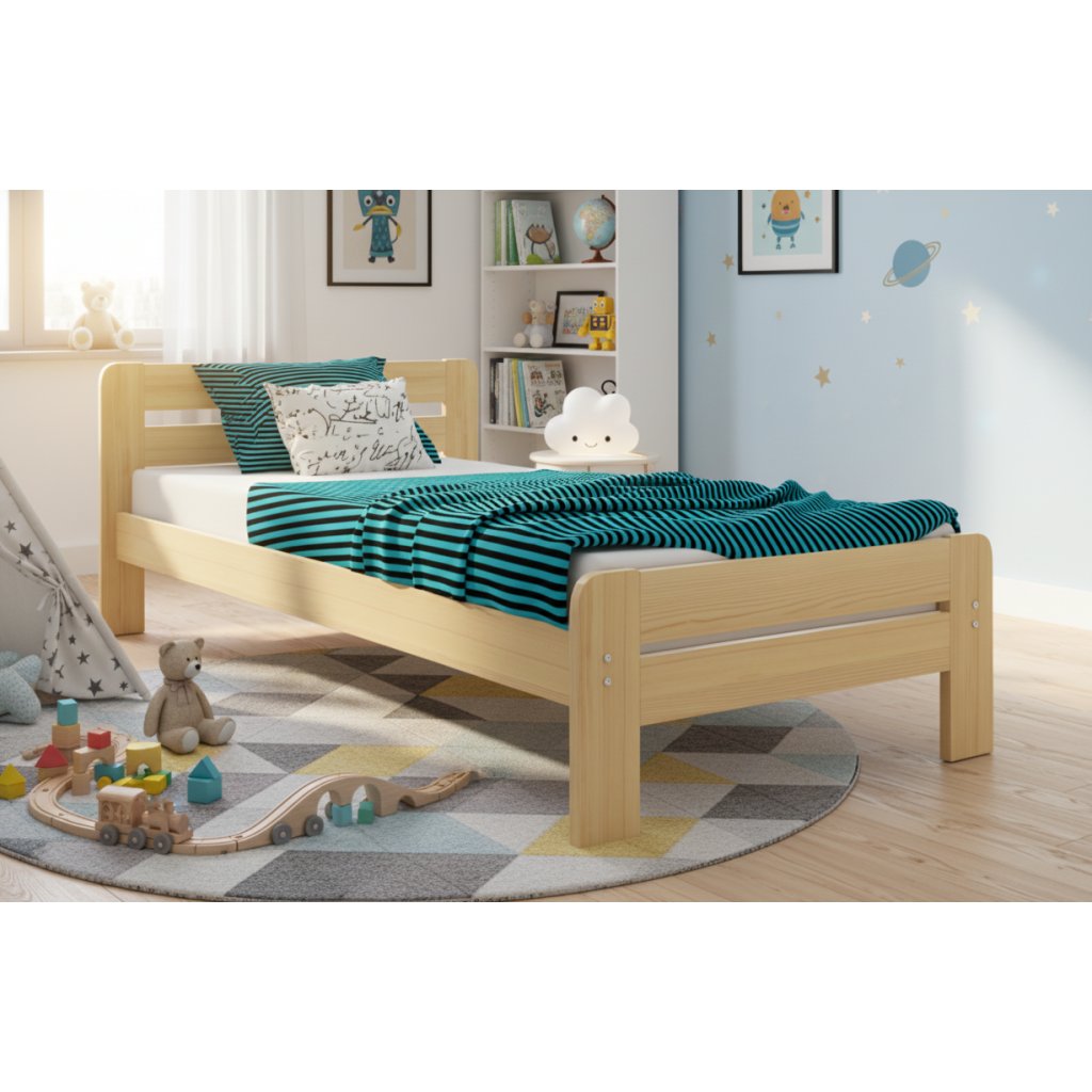 A DALLAS egyszemélyes ágy | 90 x 200 cm kiváló minőségű tömör fenyőfából készült, amely hosszú élettartamot, szilárdságot és stabilitást garantál. A matracléc többrétegű. Az ágy összeszerelése gyors és egyszerű, így nem vesz igénybe sok időt, mint a bonyolultabb modellek esetében. Tisztítása egyszerű - csak törölje át egy nedves ruhával vagy fa bútorokhoz való tisztítószerrel.