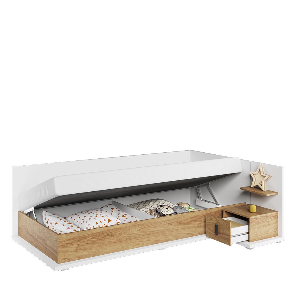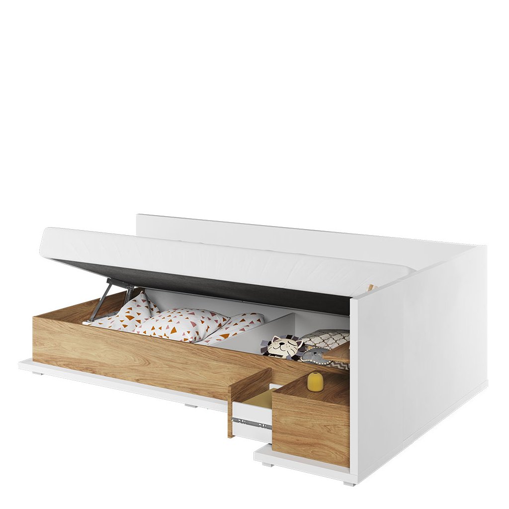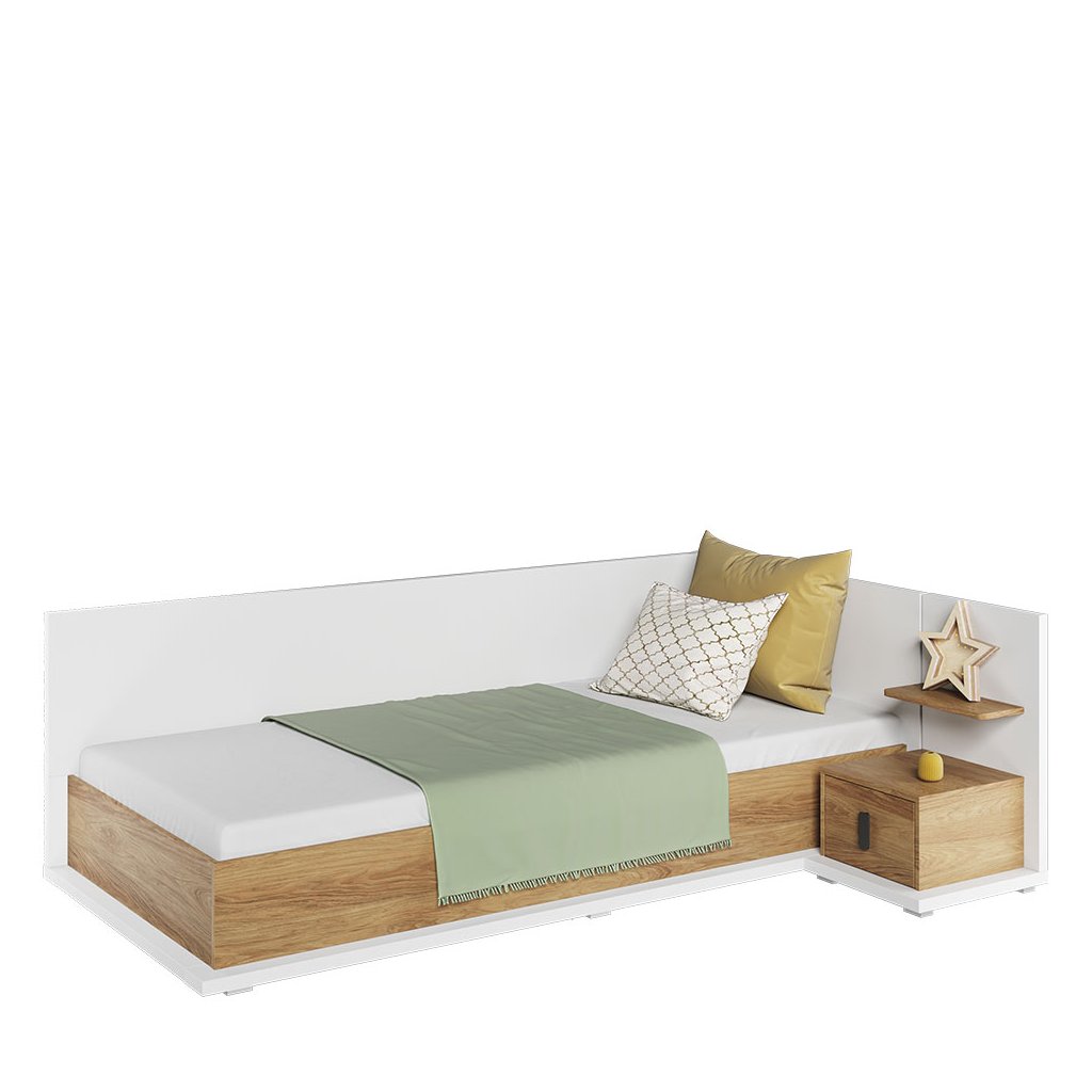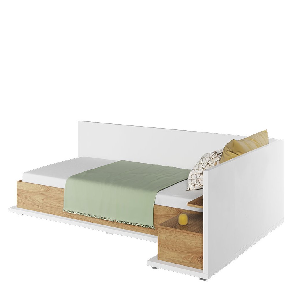 A szép és praktikus MISSI MS-09Pegyszemélyes ágy fehér és meleg fa színek kombinációjában kellemes berendezést biztosít bármely gyerekszobában. Az ágy a megfelelő dizájnnal rendelkezik. Az ágy felső és oldalsó részei egy plusz fejtámlával vannak felszerelve, a teljes kényelem érdekében célszerű párnákkal kiegészíteni őket. Az ágy belseje tárolóhelyet biztosít ágynemű vagy játékok számára. Az ágyhoz egy kényelmes bonell matrac tartozik. Az egész ágy tartós laminált bútorlapból készült, tartós ABS szegéllyel. Az éjjeliszekrény nem része az árnak, de külön megrendelhető - a MISSI MS-08P éjjeliszekrény .