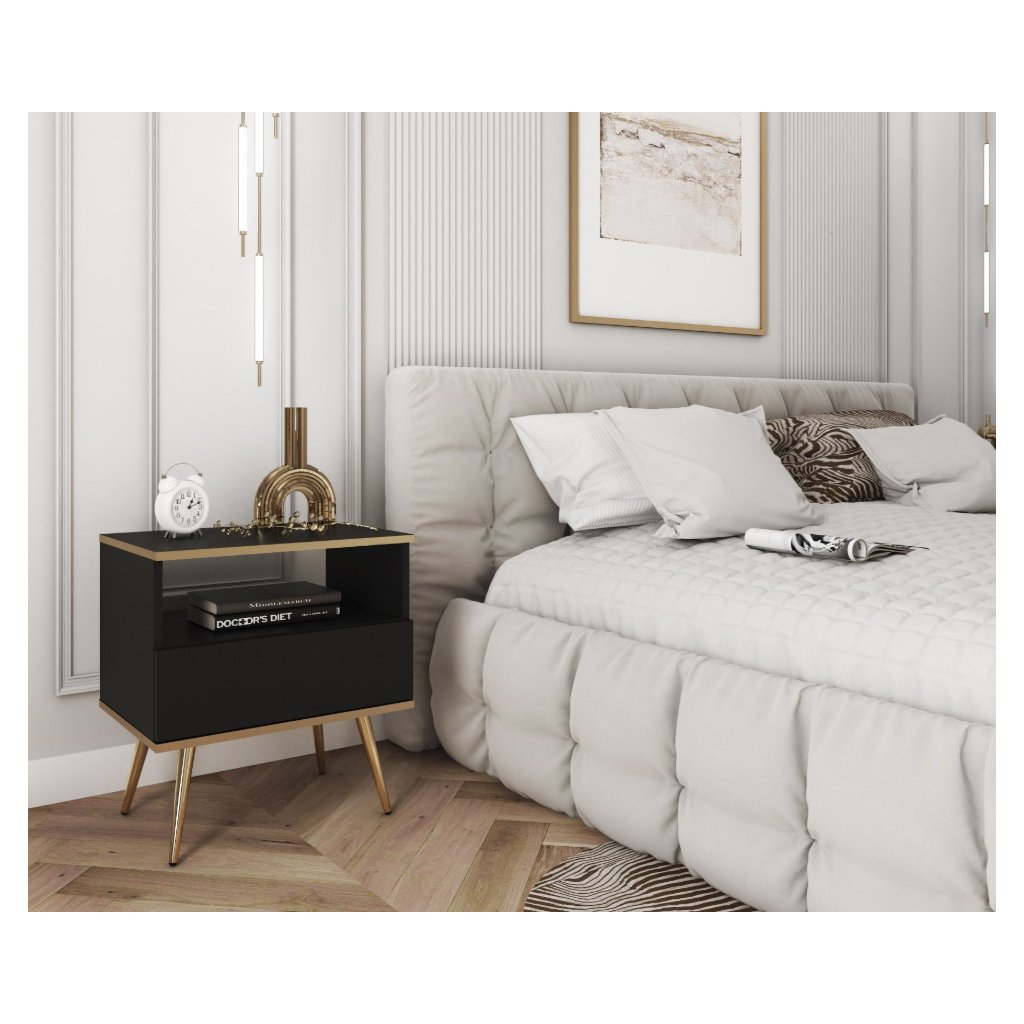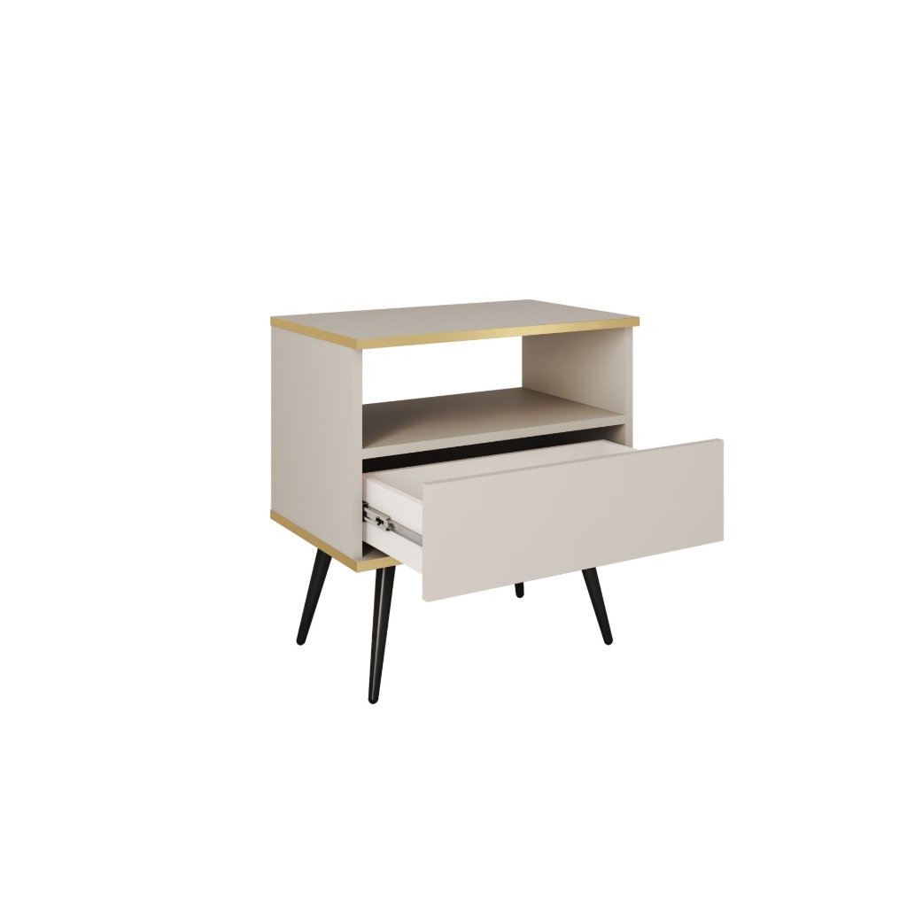 Éjjeli szekrény BIJOU S-54 | A fekete/arany lábak minőségi anyagokból készülnek MDF- el kombinálva. Az asztal erős lábakkal és stílusos Push-to-Open nyílással rendelkezik. A fiókok teljes kihúzható golyóscsapágyakkal vannak ellátva. A lábak magasak, ami alkalmas robotporszívónak. Az asztal könnyen karbantartható és tisztítható , így időt és karbantartási költségeket takarít meg.