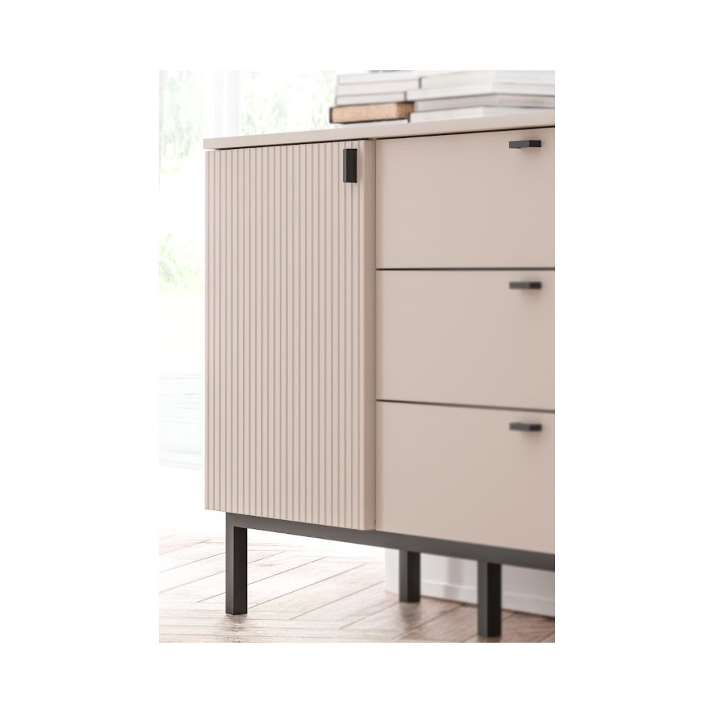 A modern KORFU kollekció ideális választás bármely hálószoba vagy diákszoba berendezéséhez. A bútorok elegáns kasmír színben készültek . A KORFU 75 éjjeliszekrény egy fiókkal és egy nyitott polccal rendelkezik. A kollekció időtlen, mégis érzéki és kifinomult megjelenésű. A sima és barázdált frontok kombinációja egyedi és stílusos megjelenést kölcsönöz a bútoroknak. A KORFU bútorokkal könnyedén teremthet harmóniával, eleganciával és kényelemmel teli otthont .