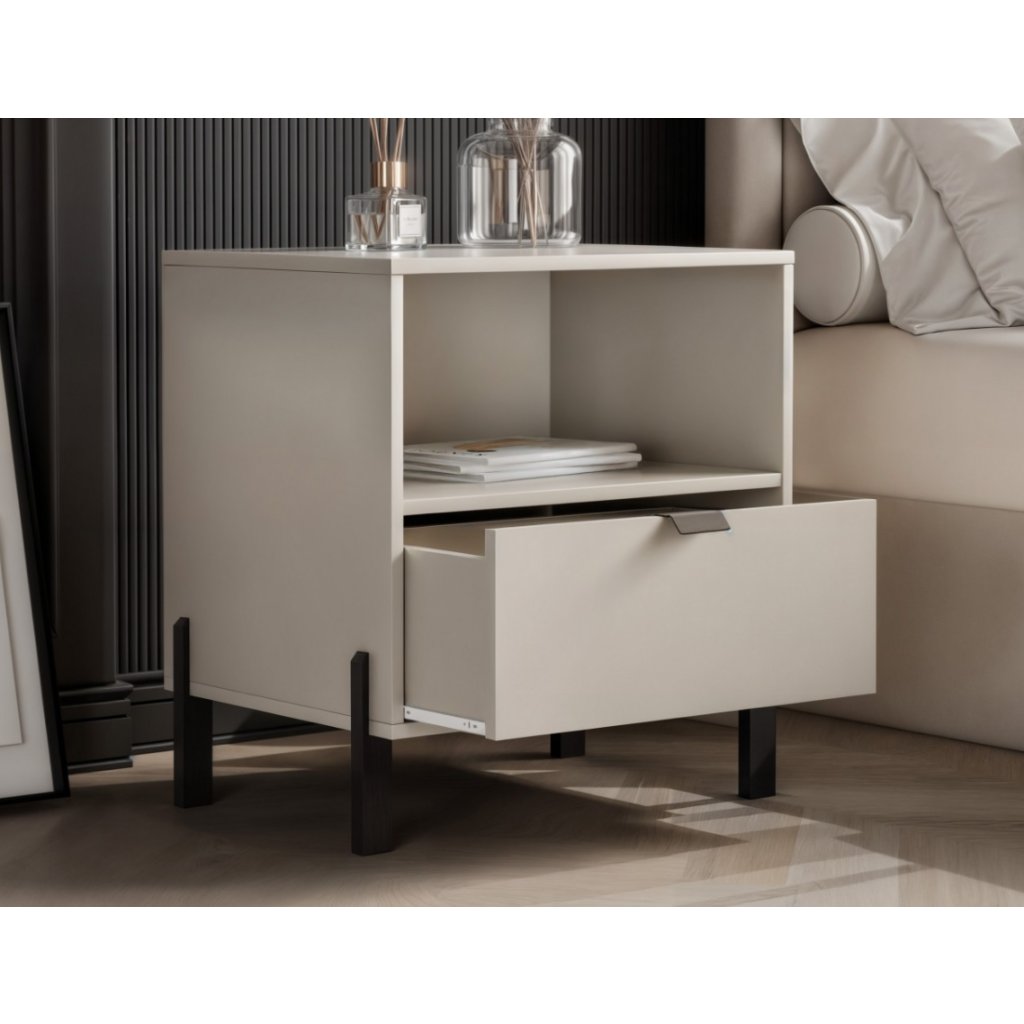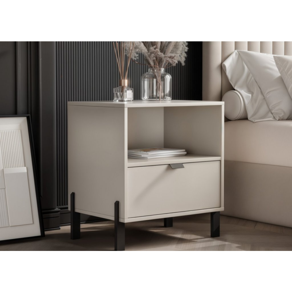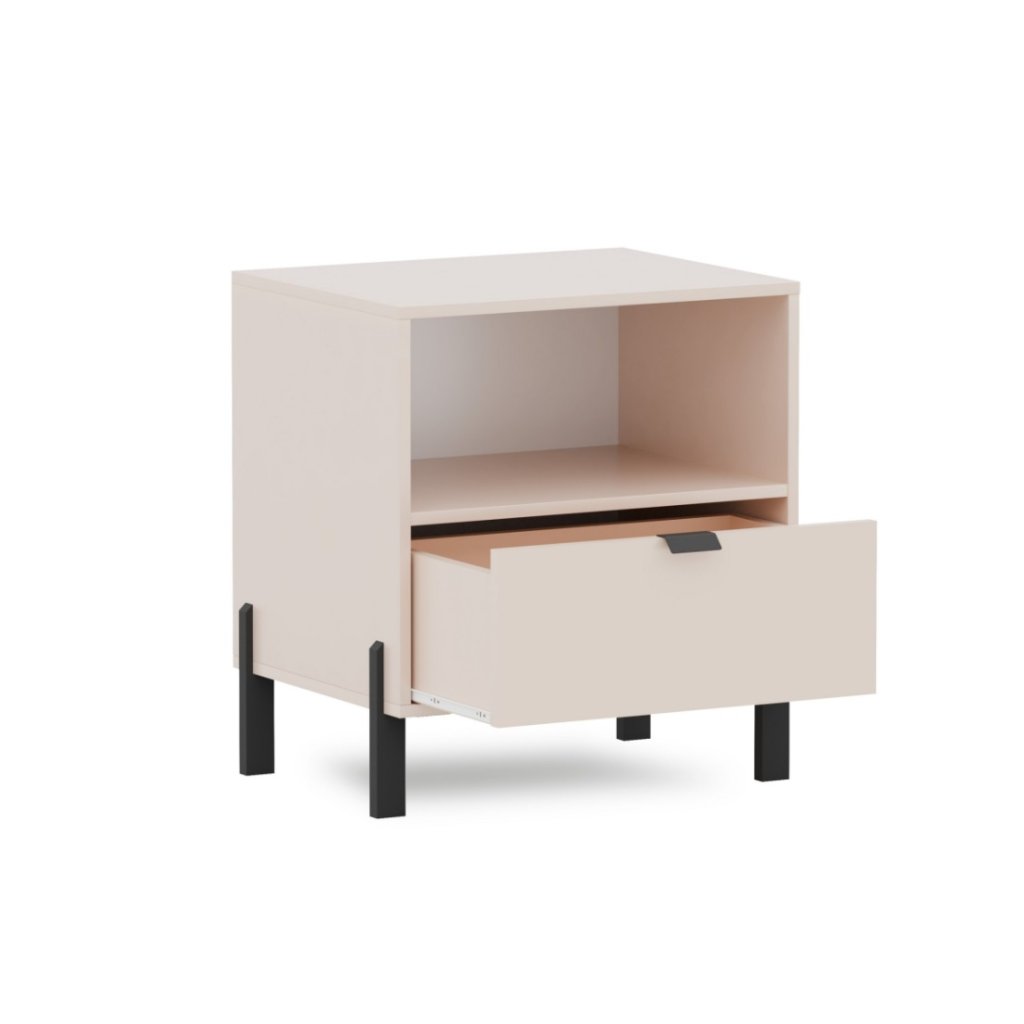 A CREMONA 1S éjjeliszekrény ...- ban készült Világos színű, kasmír árnyalatú dizájn , amely kellemes hangulatot teremt . Az asztalt elegáns fekete fogantyúk és magas lábak egészítik ki , egyedi stílust kölcsönözve a bútornak . Egy természetes, hangulatos és békés, pihenést elősegítő belső tér megteremtéséhez a kasmír bútorok az ideális választás .