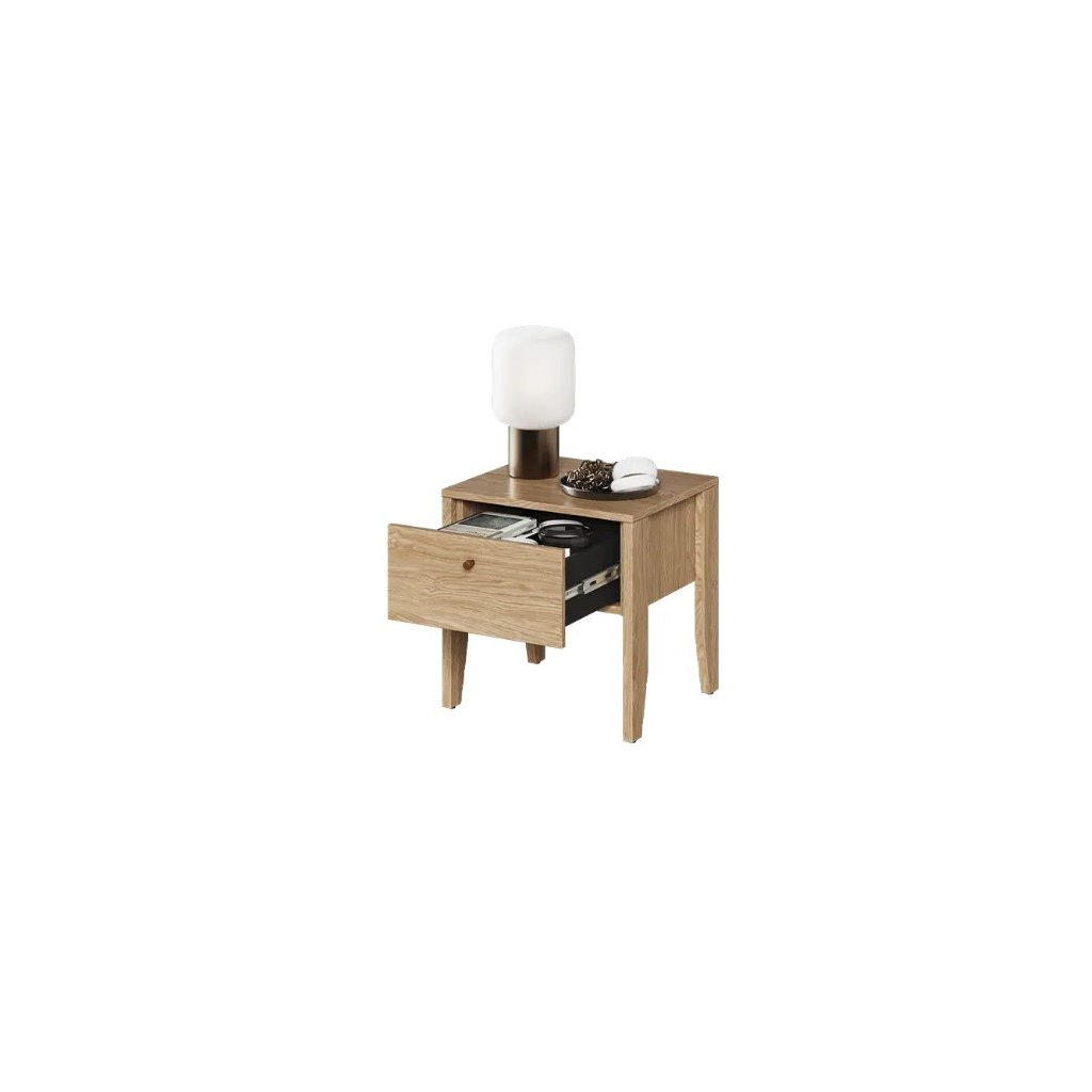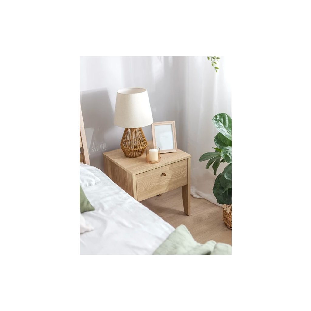 Ez az elegáns éjjeliszekrény a KORINA kollekcióból ötvözi a praktikumot a modern dizájnnal . Olyan bútort keres, amely segít rendszerezni és egy csipetnyi bájt kölcsönöz hálószobájának? A KORINA CZ-05 éjjeliszekrény az ideális megoldás. Az éjjeliszekrény tágas, egy fiókkal a... Kellemes olajos tölgyfa felület, amely meleg és természetes megjelenést kölcsönöz a bútoroknak.