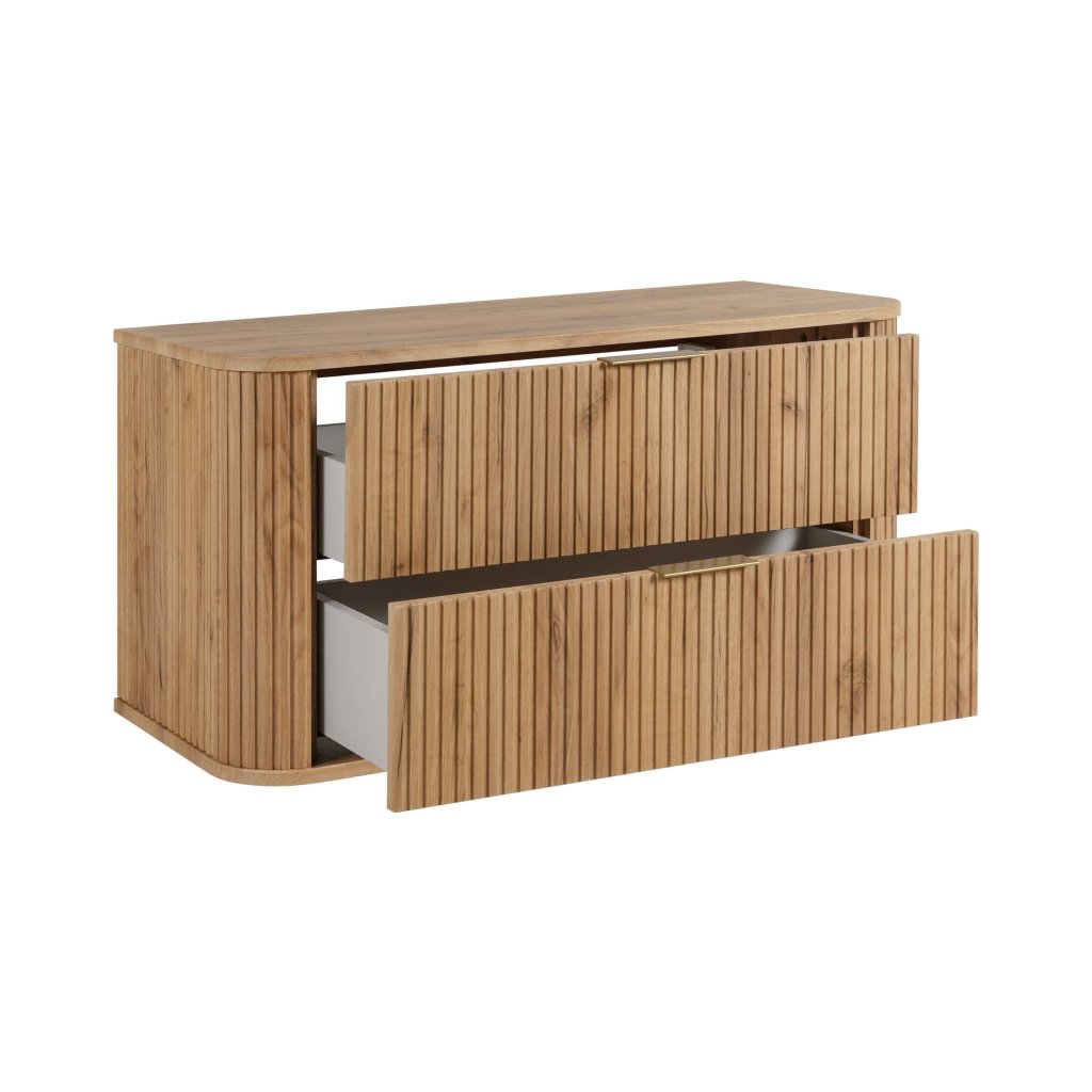 Ha fürdőszobáját a következő szintre szeretné emelni, egy 100 cm széles mosdószekrény remek választás. Bőséges tárolóhelyet kínál, aminek köszönhetően minden rendezetten elfér, és a fürdőszoba tiszta és rendezett lesz. A tölgyfa craft gold dekorral ellátott szekrény elegáns megjelenést kölcsönöz a belső térnek, ugyanakkor tökéletesen illeszkedik a fehér szaniterekhez, fekete kiegészítőkhöz és modern csempékhez. Az ELEGANCE Craft gold mosdószekrény domináns dizájneleme a függőlegesen barázdált előlap , amely luxus és divatos megjelenést kölcsönöz, valamint a lekerekített élek , amelyek lágyítják a szekrény összképét. A 100 cm-es szélességnek köszönhetően kényelmet biztosít a mindennapi használathoz - több hely jut a kozmetikumoknak, gyógyszereknek, törölközőknek és egyéb kellékeknek. A szekrény ideális családi fürdőszobákba vagy olyan háztartásokba is , ahol a fürdőszobát intenzíven használják.