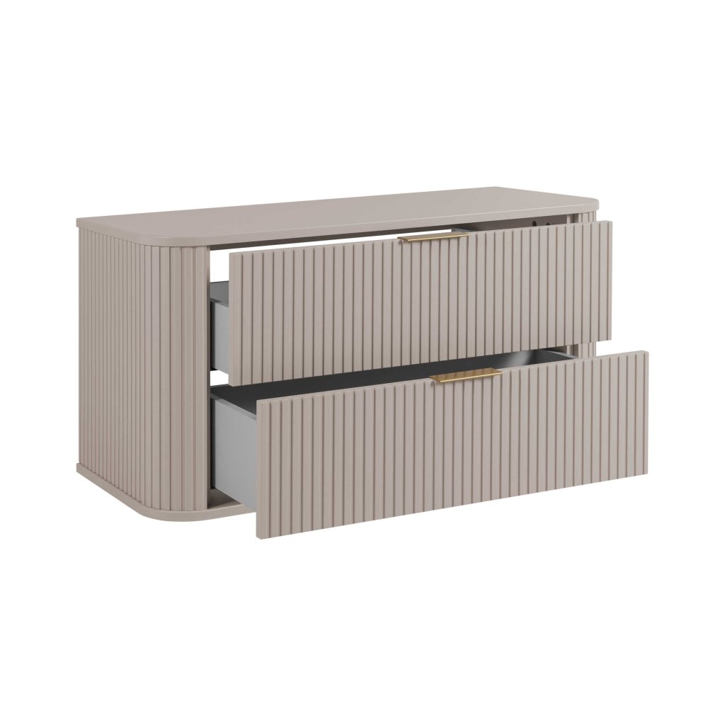 Ha fürdőszobáját a következő szintre szeretné emelni, egy 100 cm széles mosdószekrény remek választás. Bőséges tárolóhelyet kínál, aminek köszönhetően minden rendezetten elfér, és a fürdőszoba tiszta és rendezett lesz. A bézs szín elegáns külsőt kölcsönöz a belső térnek, ugyanakkor tökéletesen kombinálódik a fehér szaniterekkel, fekete kiegészítőkkel és modern csempékkel. Az ELEGANCE Cashmere mosdószekrény domináns dizájneleme a függőlegesen barázdált előlap, amely luxus és divatos hatást kelt, valamint a lekerekített élek , amelyek lágyítják a szekrény összképét. A 100 cm-es szélességnek köszönhetően kényelmet biztosít a mindennapi használathoz - több hely jut a kozmetikumoknak, gyógyszereknek, törölközőknek és egyéb kellékeknek, ugyanakkor kellemes érzés, hogy semmi sincs "látszótérben".