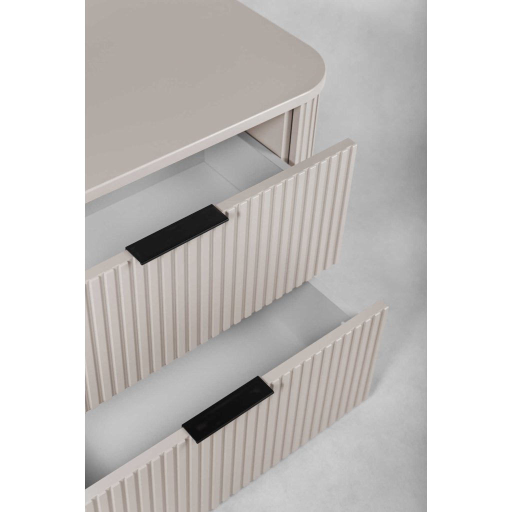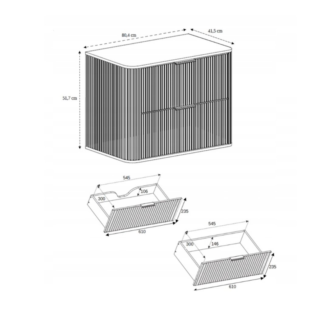 A 80 cm-es mosdószekrény ideális megoldás mindazok számára, akik több tárolóhelyet szeretnének a fürdőszobájukban a dizájn feláldozása nélkül. Az ELEGANCE Cashmere mosdószekrény otthonosabbá teszi a fürdőszobát, és egyben modern megjelenést is biztosít. A domináns elem a függőlegesen barázdált előlap , egy modern részlet, amely a fürdőszobát dizájntérré varázsolja. A tárolóhely praktikus felosztása lehetővé teszi, hogy mindent rendezetten tároljunk - a mindennapi kozmetikumokat, a drogériás holmikat és a nagyobb csomagokat vagy textíliákat. A fekete fogantyúk stílusos kontrasztot alkotnak, és tökéletesen illenek a modern fürdőszobai kiegészítőkhöz, egy csaptelephez vagy egy fekete dizájnú tükörkerethez.