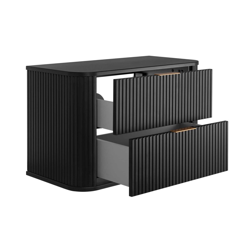 A 80 cm-es mosdószekrény ideális megoldás mindazok számára, akik több tárolóhelyet szeretnének a fürdőszobájukban a dizájn feláldozása nélkül. Az ELEGANCE BLACK mosdószekrény kellemes, elegáns megjelenést kölcsönöz, amely otthonossá és egyben modernné teszi a fürdőszobát. A domináns elem a függőlegesen barázdált előlap , amely prémium karaktert kölcsönöz a szekrénynek, valamint a lekerekített élek , amelyek lágyabbá és elegánsabbá teszik, mint a klasszikus szögletes szekrényeket. A tárolóhely praktikus felosztása lehetővé teszi, hogy mindent rendezetten tároljunk - a mindennapi kozmetikumokat, a drogériás holmikat és a nagyobb csomagokat vagy textíliákat. A fekete fogantyúk stílusos kontrasztot alkotnak, és remekül illenek a modern fürdőszobai kiegészítőkhöz, egy csaptelephez vagy egy fekete dizájnú tükörkerethez.