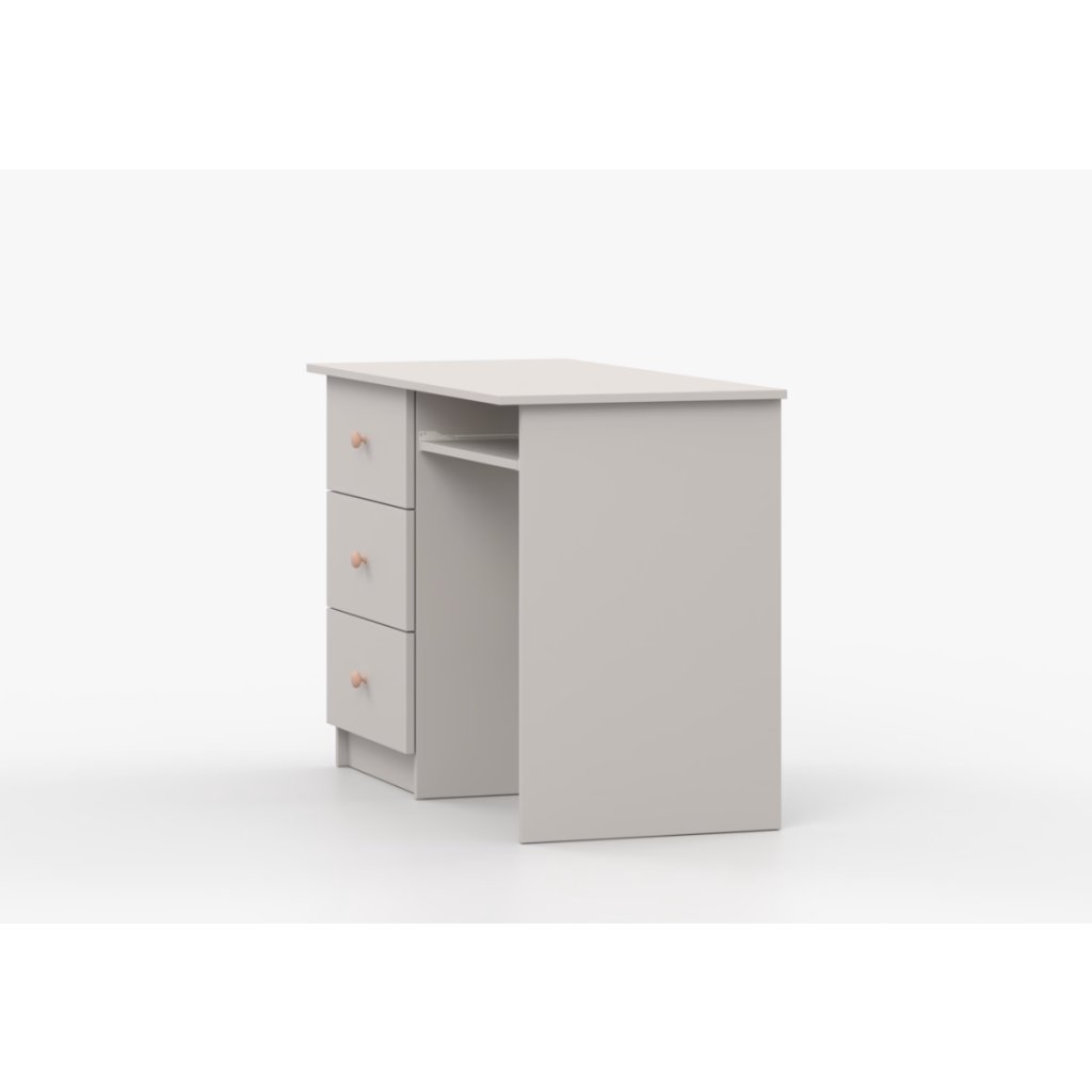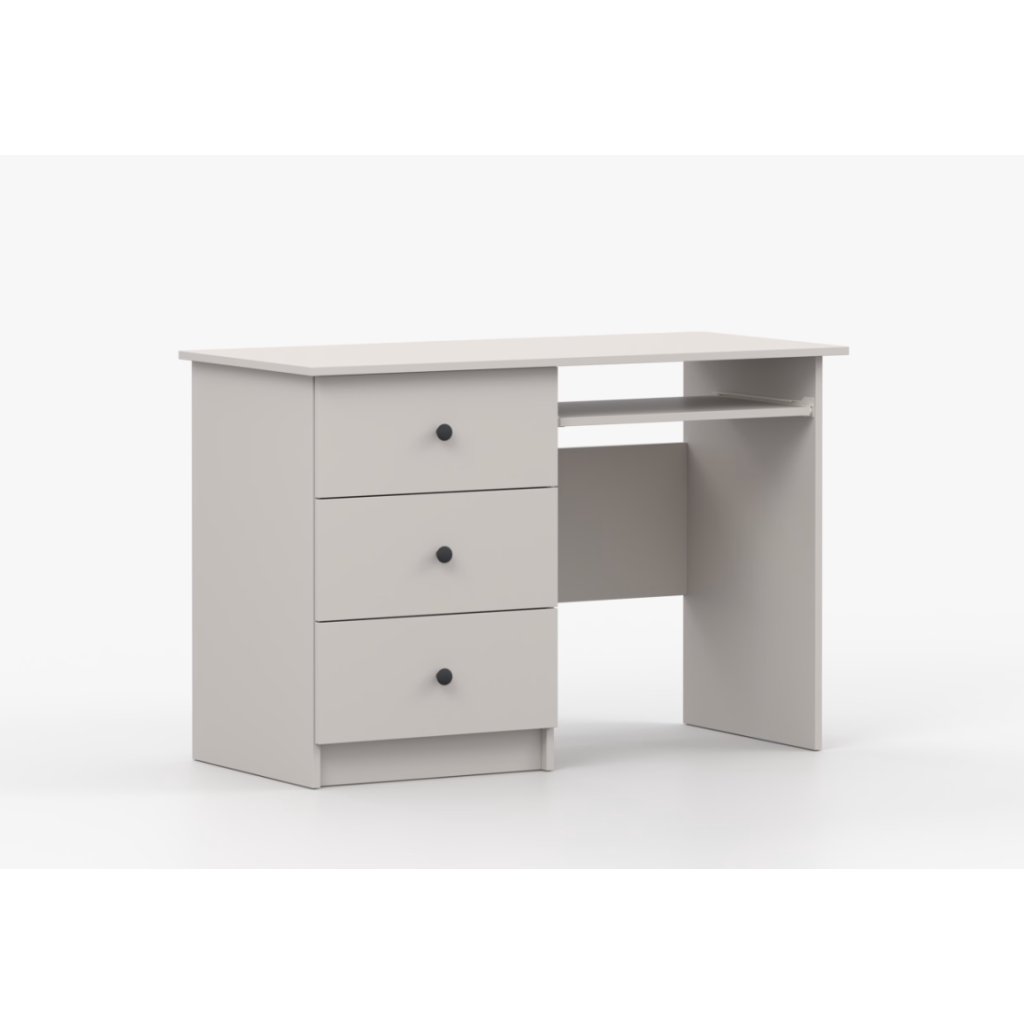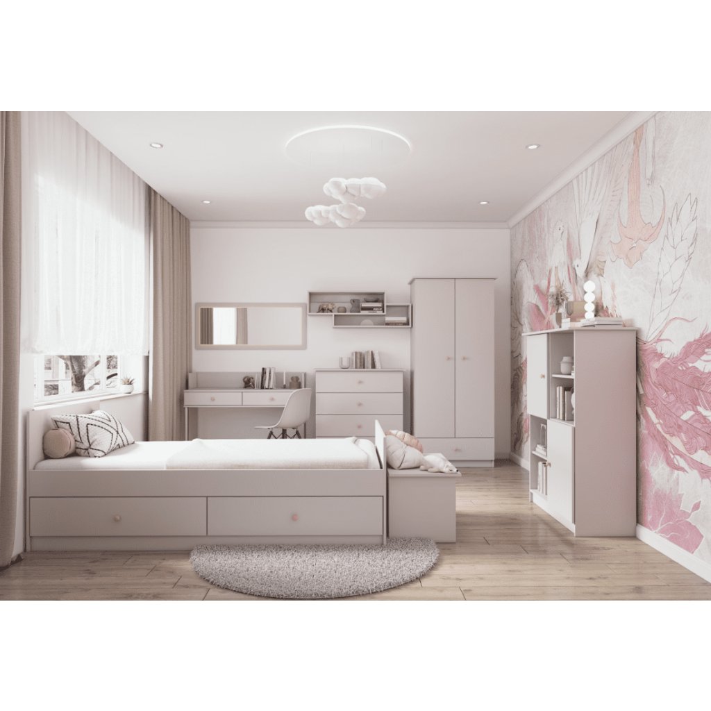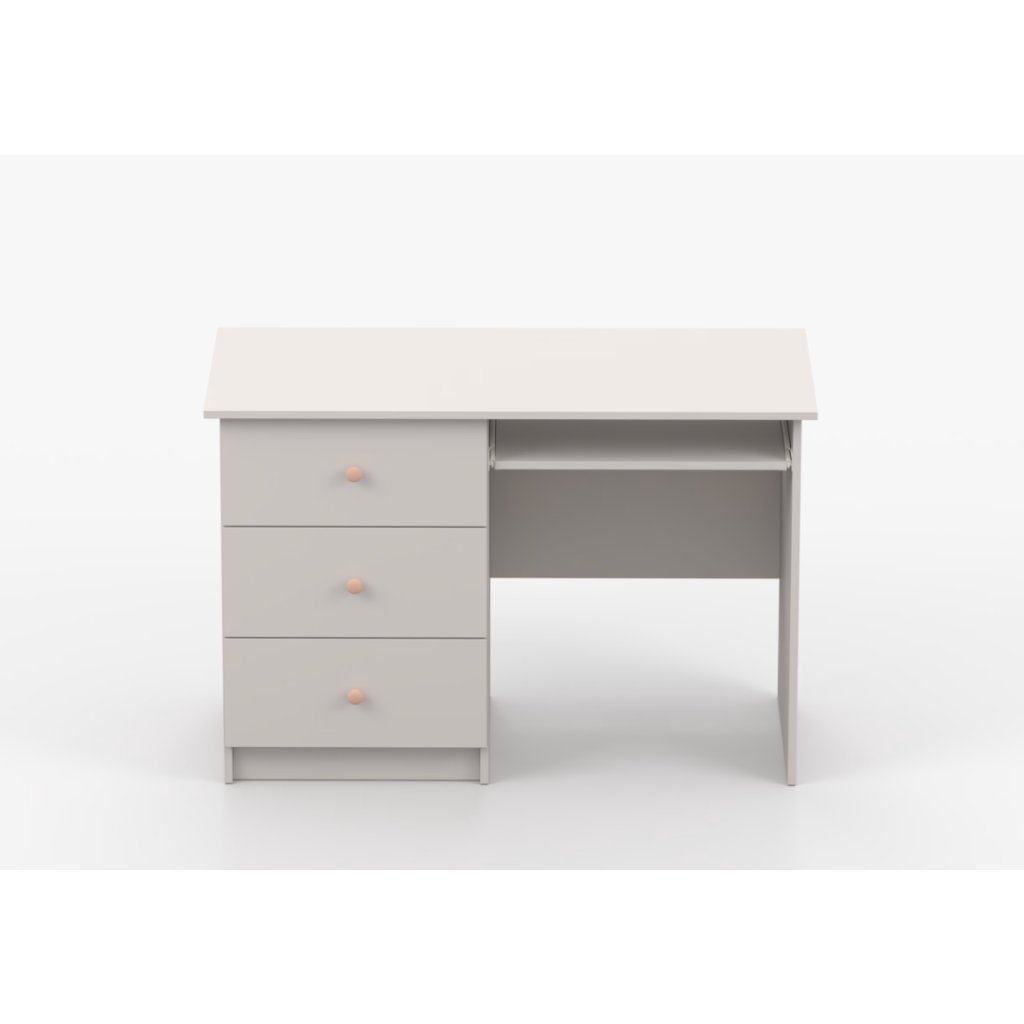 A modern ELFI íróasztal ideális hely iskolás gyerekek és fiatal kreatív gyerekek számára. Elegendő munkafelületet biztosít a házi feladatok írásához, olvasáshoz és kreatív tevékenységekhez. A modern bézs dizájn időtlen hatású, és könnyen kombinálható a szoba többi bútorával. A praktikus fiókok és tárolórekeszek rendben tartják az összes szükséges eszközt - a füzetektől, könyvektől az iskolai felszerelésekig. Az íróasztalt rózsaszín vagy grafit színű fogantyúk egészítik ki, amelyek játékos vagy éppen ellenkezőleg, elegáns jelleget kölcsönöznek neki, választás szerint. Teremtsen harmonikus környezetet gyermeke számára , ahol mindennek megvan a maga helye.