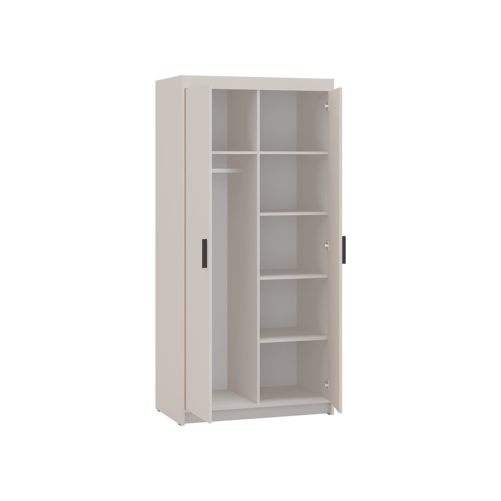 A 2D / homokbézs ruhásszekrény kiváló minőségű 15 mm-es laminált anyagból készült, amely tartósságot, hosszú élettartamot és az Ön elégedettségét garantálja. A praktikus kialakítás, az időtlen bézs szettak, a tökéletes dizájn és a modern megjelenés a bútorok jellemző jellemzői. Gyönyörű fekete műanyag fogantyúk teszik teljessé a ruhásszekrényt. Ne habozzon tovább, és tegye tökéletessé hálószobáját az ELLEN 2D / homokbézs ruhásszekrény formájában. Érdeklődés esetén bővítményt is rendelhet az ELLEN 2D ruhásszekrényhez .