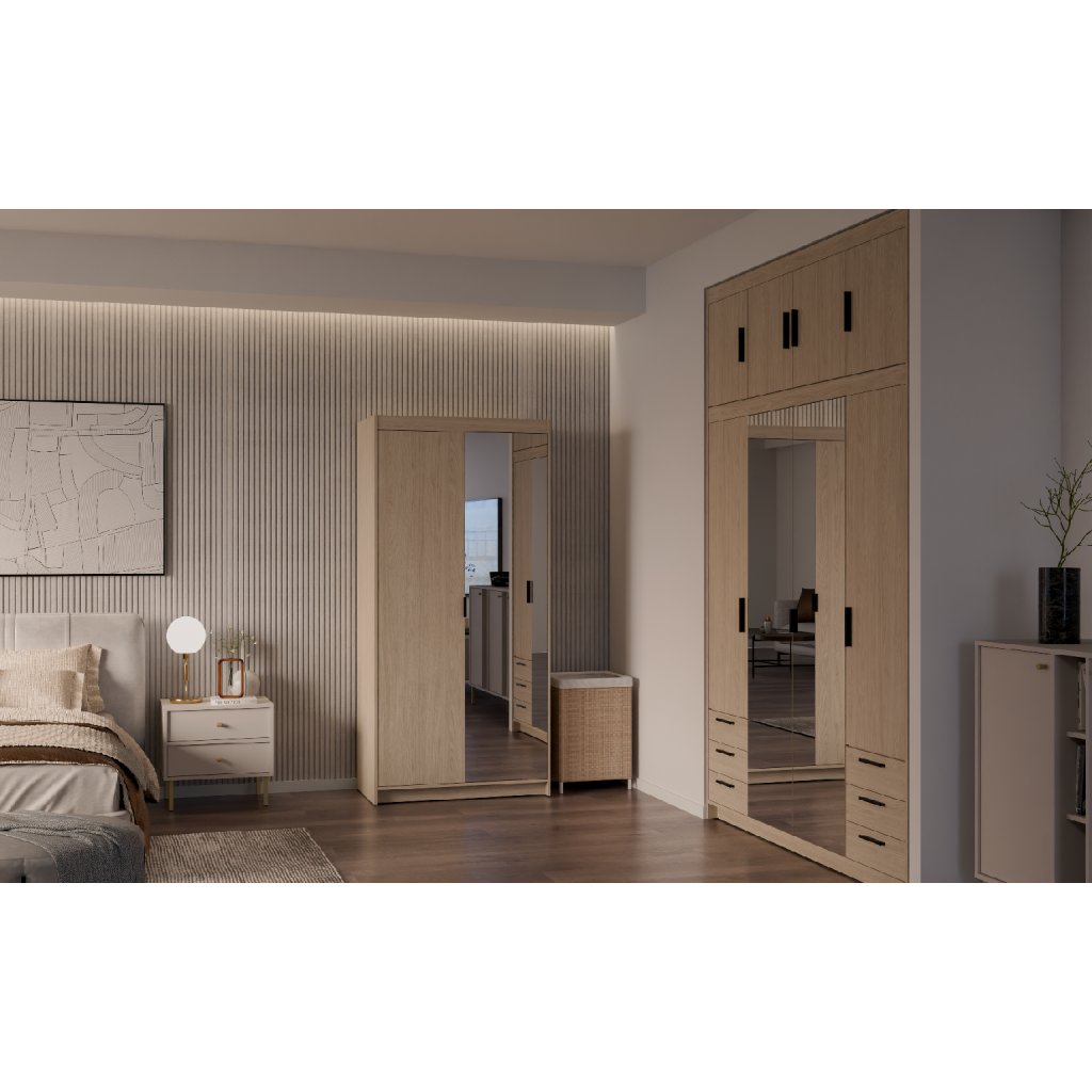 A 2D1 tükrös / olajozott tölgyfa gardrób kiváló minőségű 15 mm-es lamináltból készült, amely tartósságot, hosszú élettartamot és az Ön elégedettségét garantálja. A praktikus kialakítás, a szép barna szettak, a rendkívüli tükrös ajtók, a tökéletes dizájn és a modern megjelenés a bútorok jellemző jellemzői. Gyönyörű fekete műanyag fogantyúk teszik teljessé a gardróbot. Tehát ne habozzon tovább, és tegye tökéletessé hálószobáját az ELLEN 2D1 / olajozott tölgyfa gardrób formájában. Érdeklődés esetén rendelhet bővítményt is az ELLEN 2D / olajozott tölgyfa gardróbhoz.