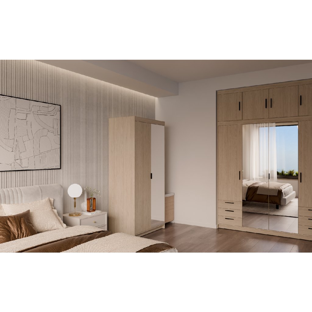 ELLEN 2D1 gardróbszekrény tükörrel | olajozott tölgyfa