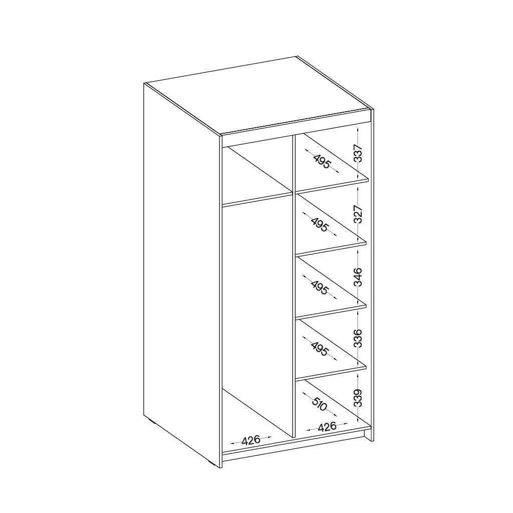 - polc mélysége : 49,5 cm