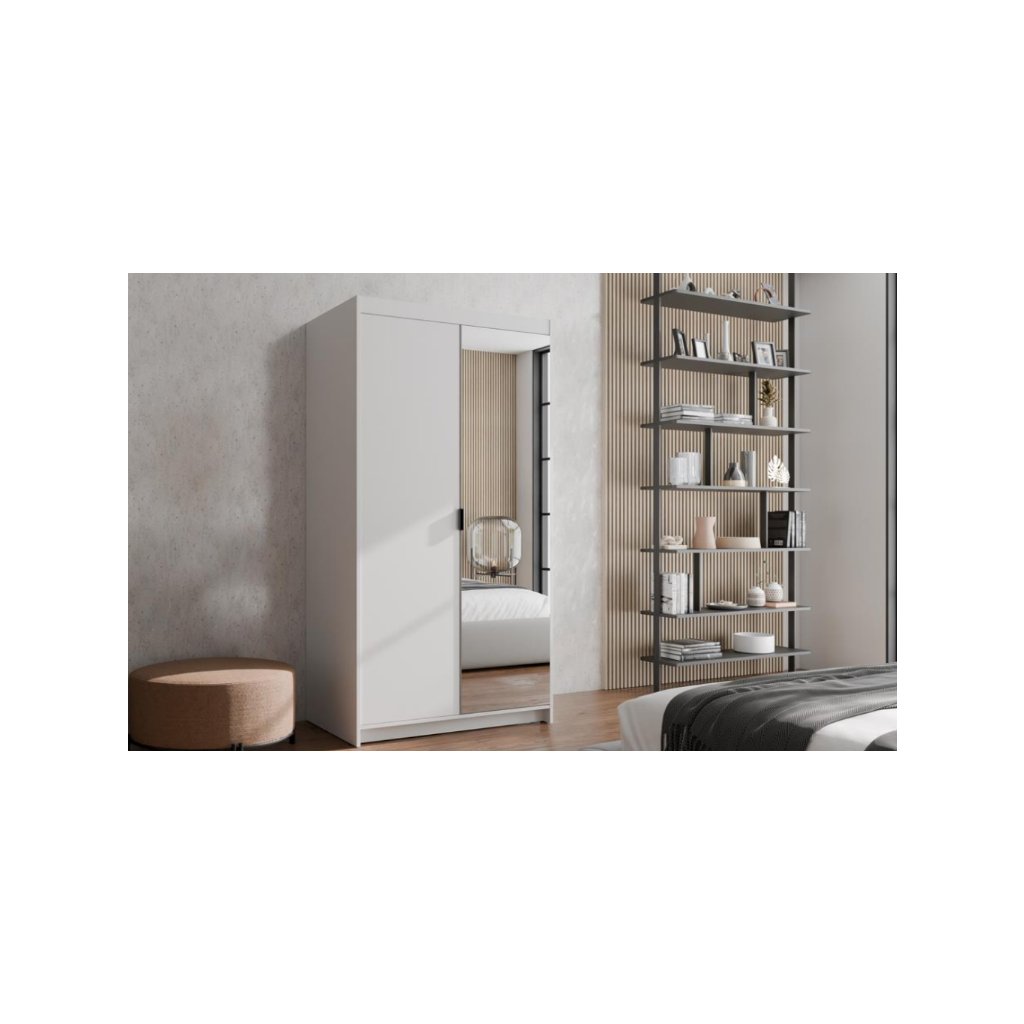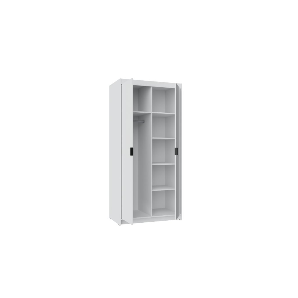 A 2D1 tükrös gardróbszekrény kiváló minőségű, 15 mm-es laminált anyagból készült, amely tartósságot, hosszú élettartamot és az Ön elégedettségét garantálja. A praktikus kialakítás, az időtlen fehér szettak, a rendkívüli tükrös ajtók, a tökéletes dizájn és a modern megjelenés a bútorok jellemző jellemzői. A gyönyörű fekete műanyag fogantyúk összhatást kölcsönöznek a gardróbszekrénynek. Tehát ne habozzon tovább, és tegye tökéletessé hálószobáját az ELLEN 2D1 gardróbszekrény formájában. Ha érdekli, az ELLEN 2D gardróbszekrényhez bővítményt is rendelhet.