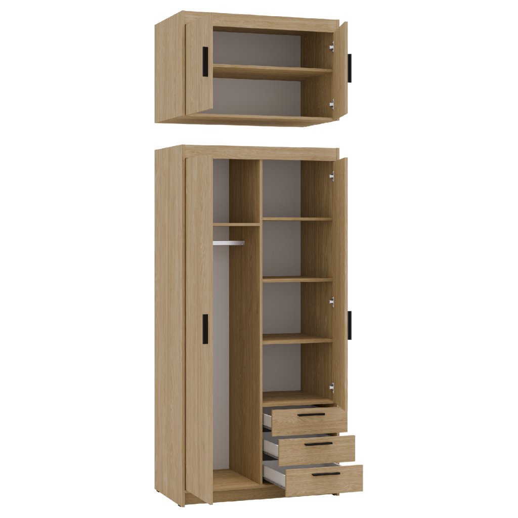 A nagyszerű 2D3S / olajozott tölgyfa gardróbszekrény kiváló minőségű 15 mm-es laminált anyagból készült, amely tartósságot, hosszú élettartamot és az Ön elégedettségét garantálja. A praktikus kialakítás, az időtlen színvilág, a tökéletes dizájn és a modern megjelenés a bútorok jellemző jellemzői. Gyönyörű fekete műanyag fogantyúk teszik egyedivé a gardróbot. Tehát ne habozzon tovább, és adjon hálószobájának egy kis egyediséget az ELLEN 2D3S / olajozott tölgyfa gardróbszekrény formájában. Ha érdekli, rendelhet bővítményt is az ELLEN 2D / olajozott tölgyfa gardróbszekrényhez .