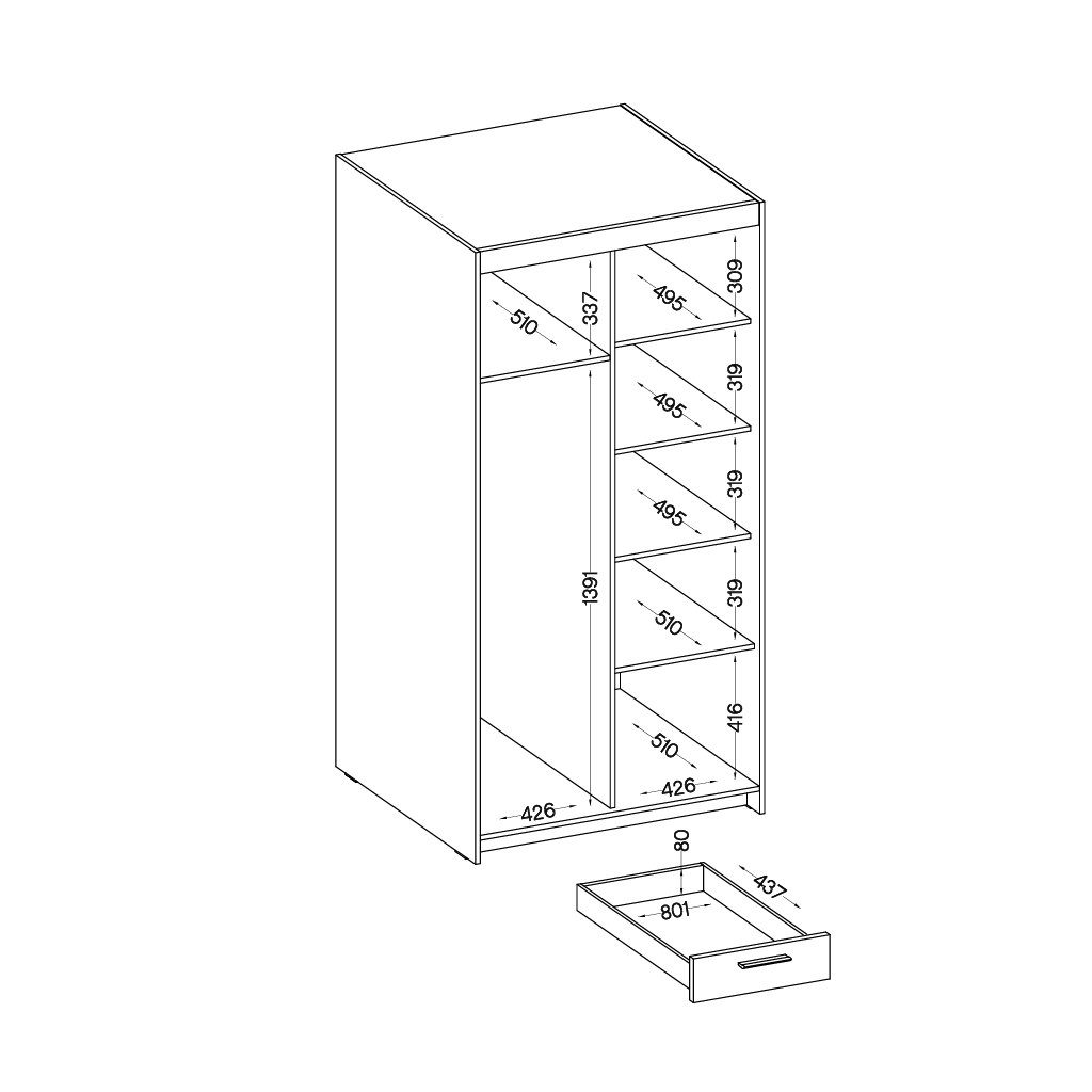 A szekrény kiváló minőségű és tartós anyagból készült. Az anyag könnyen karbantartható és tisztítható , így időt és költségeket takarít meg a karbantartással kapcsolatban.