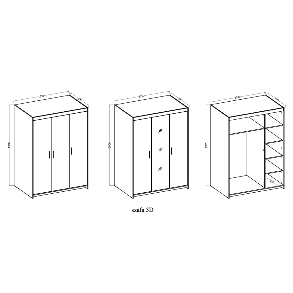 A barna 3D ruhásszekrény kiváló minőségű, 15 mm-es laminált anyagból készült, amely tartósságot, hosszú élettartamot és az Ön elégedettségét garantálja. A praktikus belsőépítészet, az időtlen bézs szettak, a tökéletes dizájn és a modern megjelenés a bútorok jellemző jellemzői. Gyönyörű szürke műanyag fogantyúk teszik teljessé a ruhásszekrényt. Tehát ne habozzon tovább, és tegye tökéletessé hálószobáját az ELLEN 3D ruhásszekrény formájában. Ha érdekli, az ELLEN 3D ruhásszekrényhez bővítményt is rendelhet. Több tárolóhelyért az ELLEN konténer is kapható.