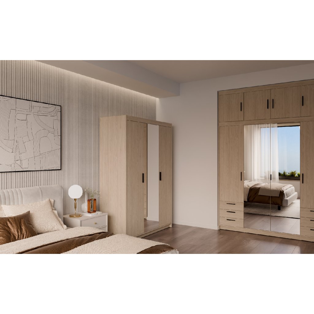 ELLEN 3D ruhásszekrény tükörrel | olajozott tölgyfa