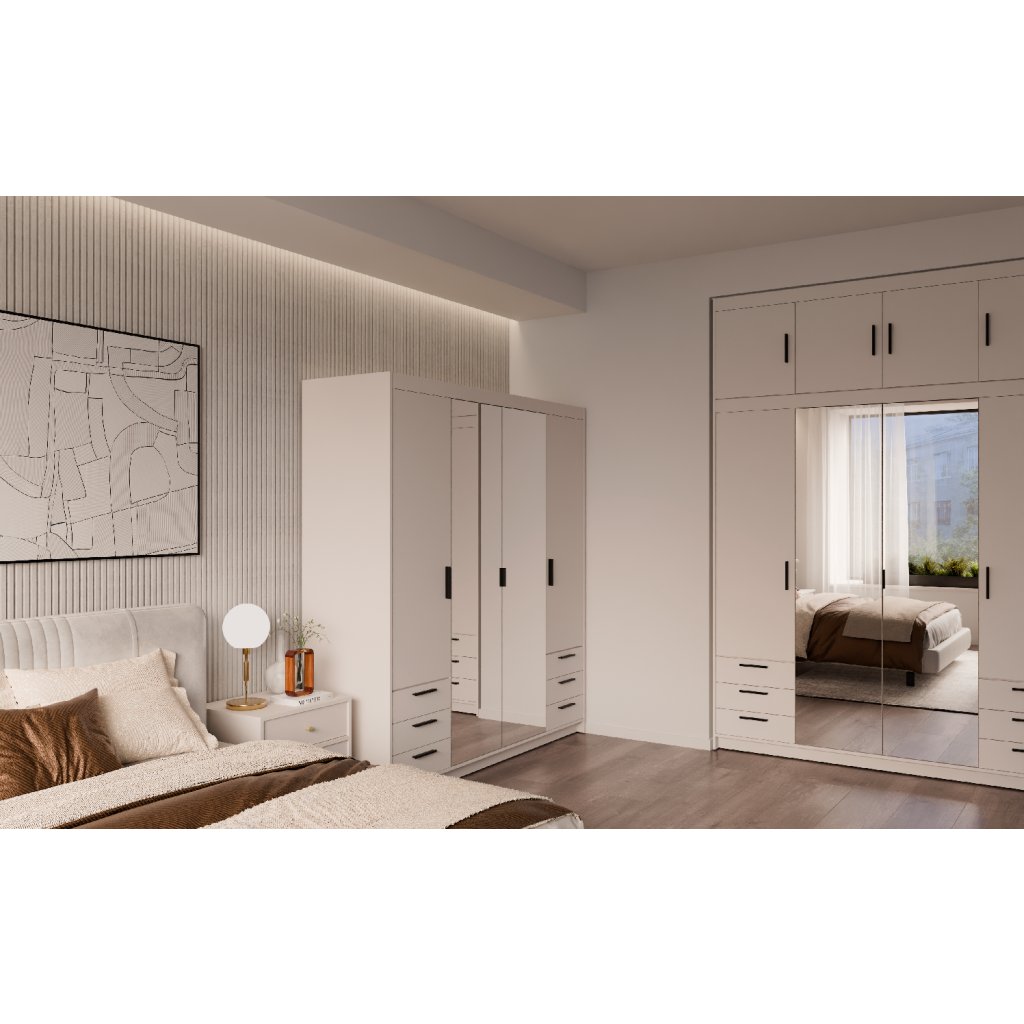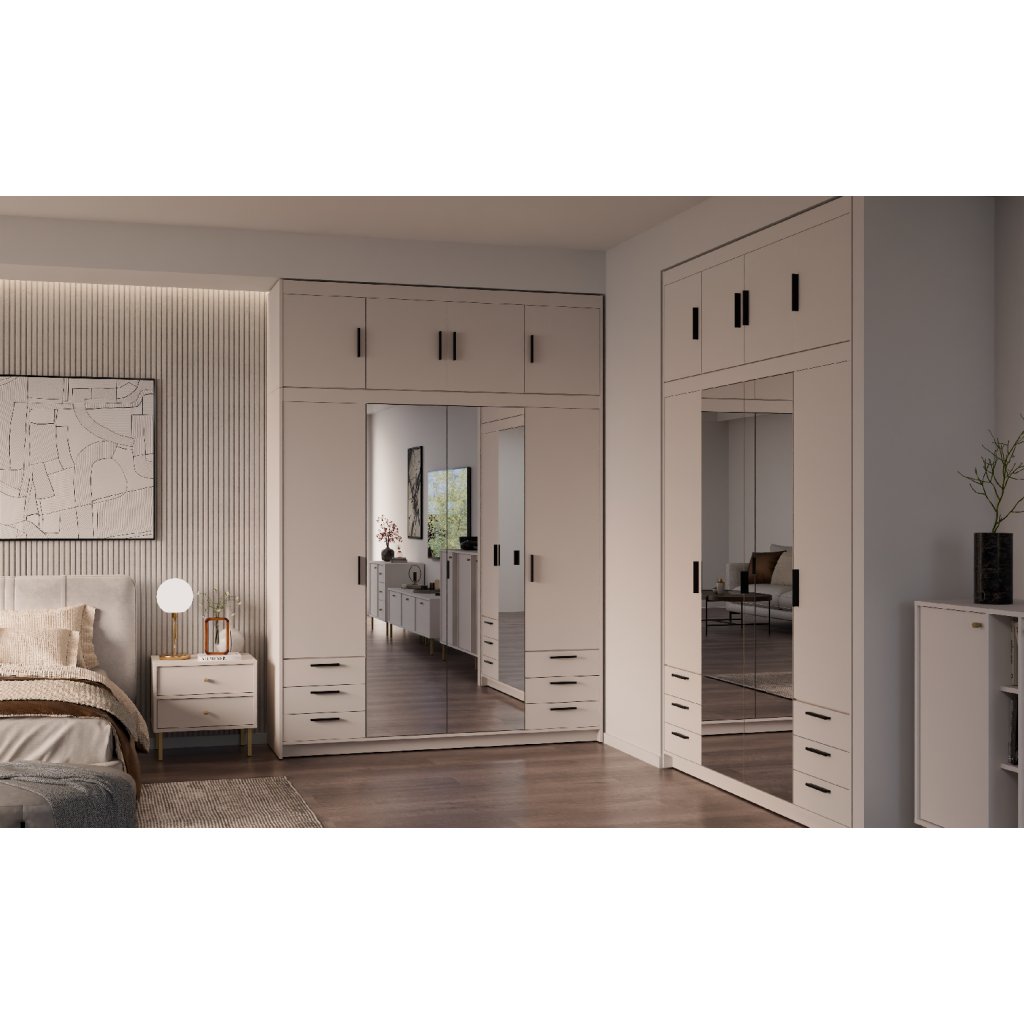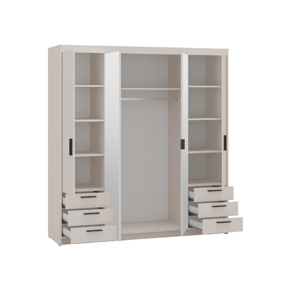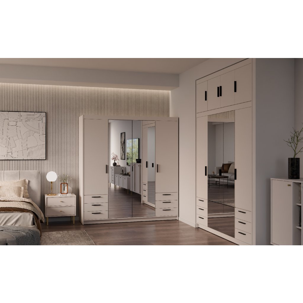 ELLEN 4D6S ruhásszekrény tükörrel | homokszínű bézs