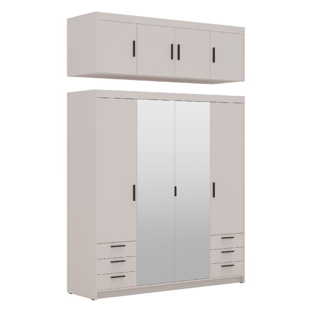 A széles, tükrös/homokbézs színű 4D6S gardróbszekrény kiváló minőségű , 15 mm-es laminált anyagból készült, amely tartósságot, hosszú élettartamot és az Ön elégedettségét garantálja. A praktikus kialakítás, a rendkívüli tükrös ajtók, az időtlen bézs dizájn, a tökéletes dizájn és a modern megjelenés a bútor tipikus jellemzői. Gyönyörű fekete műanyag fogantyúk teszik teljessé a gardróbot. Tehát ne habozzon tovább, és tegye tökéletessé hálószobáját az ELLEN 4D6S gardróbszekrény formájában. Ha érdekli, az ELLEN 4D gardróbszekrényhez / homokbézs színű kiegészítőt is rendelhet. Több tárolóhelyért az ELLEN konténer is kapható .