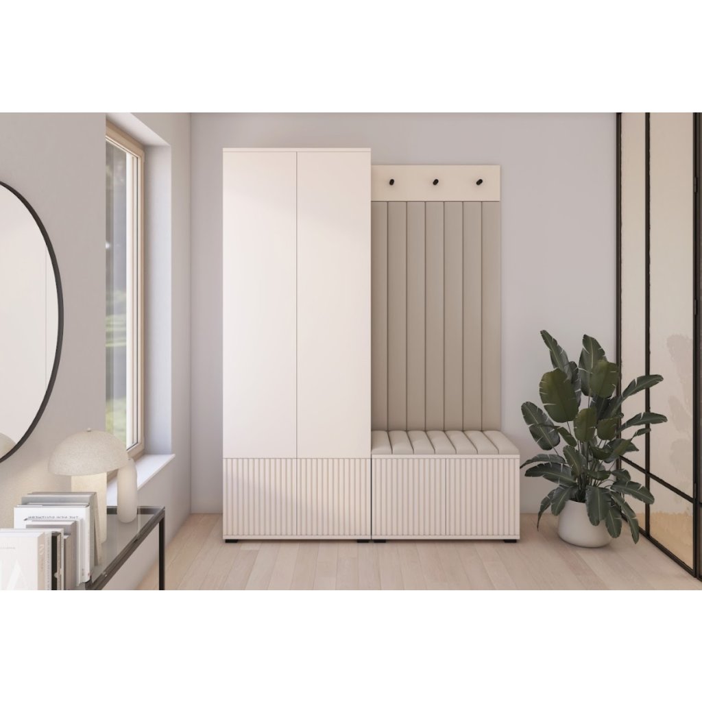 A KREO 1 | Trinity 02 alacsony lábú előszoba az elegancia és a modern dizájn tökéletes harmóniáját hozza el, míg a lágy kasmír árnyalatok kellemes melegséget és egy csipetnyi visszafogott luxust kölcsönöznek a belső térnek. Az előszoba praktikus "nyomásra nyitható" nyitórendszerrel van felszerelve , amely garantálja a kényelmet és a modern stílust.