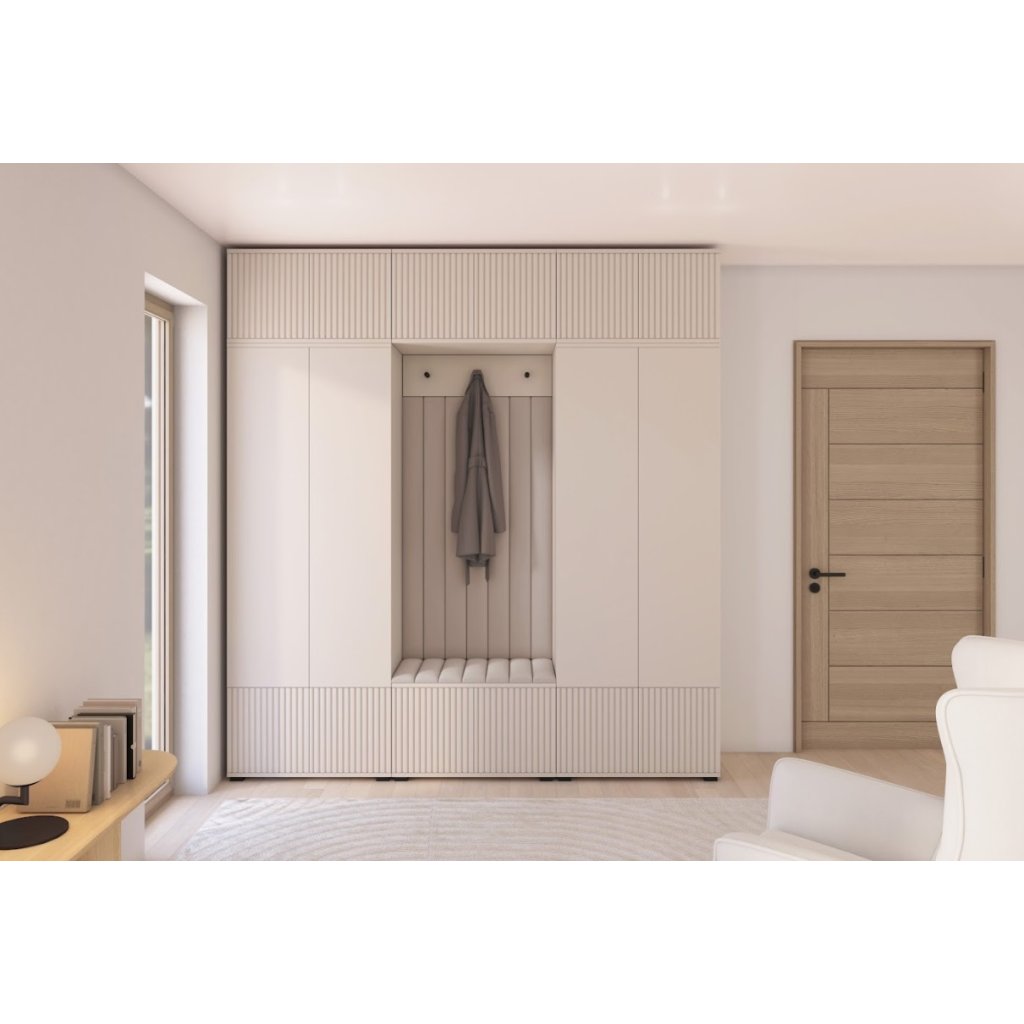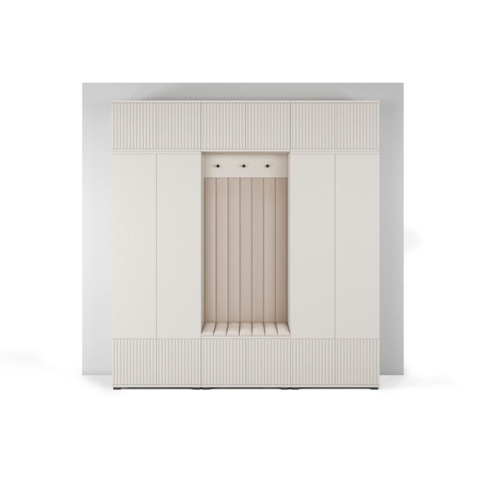 A KREO 3 | Trinity 02 alacsony lábú előszoba az elegancia és a modern dizájn tökéletes harmóniáját hozza el, míg a lágy kasmír árnyalatok kellemes melegséget és egy csipetnyi visszafogott luxust kölcsönöznek a belső térnek. Az előszoba praktikus "nyomásra nyitható" nyitórendszerrel van felszerelve , amely garantálja a kényelmet és a modern stílust.