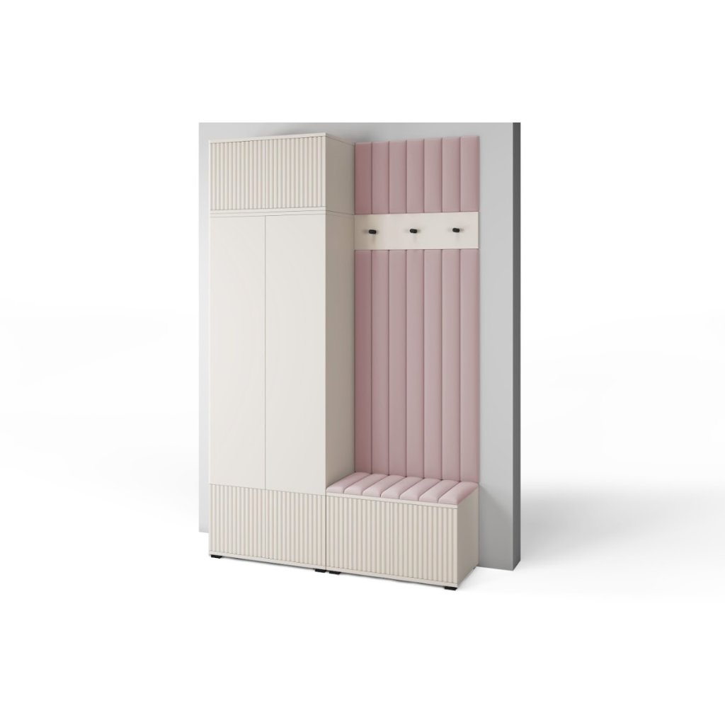 A KREO 4 | Trinity 19 alacsony lábú előszoba az elegancia és a modern dizájn tökéletes harmóniáját hozza el, míg a lágy kasmír árnyalatok kellemes melegséget és egy csipetnyi visszafogott luxust kölcsönöznek a belső térnek. Az előszoba praktikus "nyomásra nyitható" nyitórendszerrel van felszerelve , amely garantálja a kényelmet és a modern stílust.