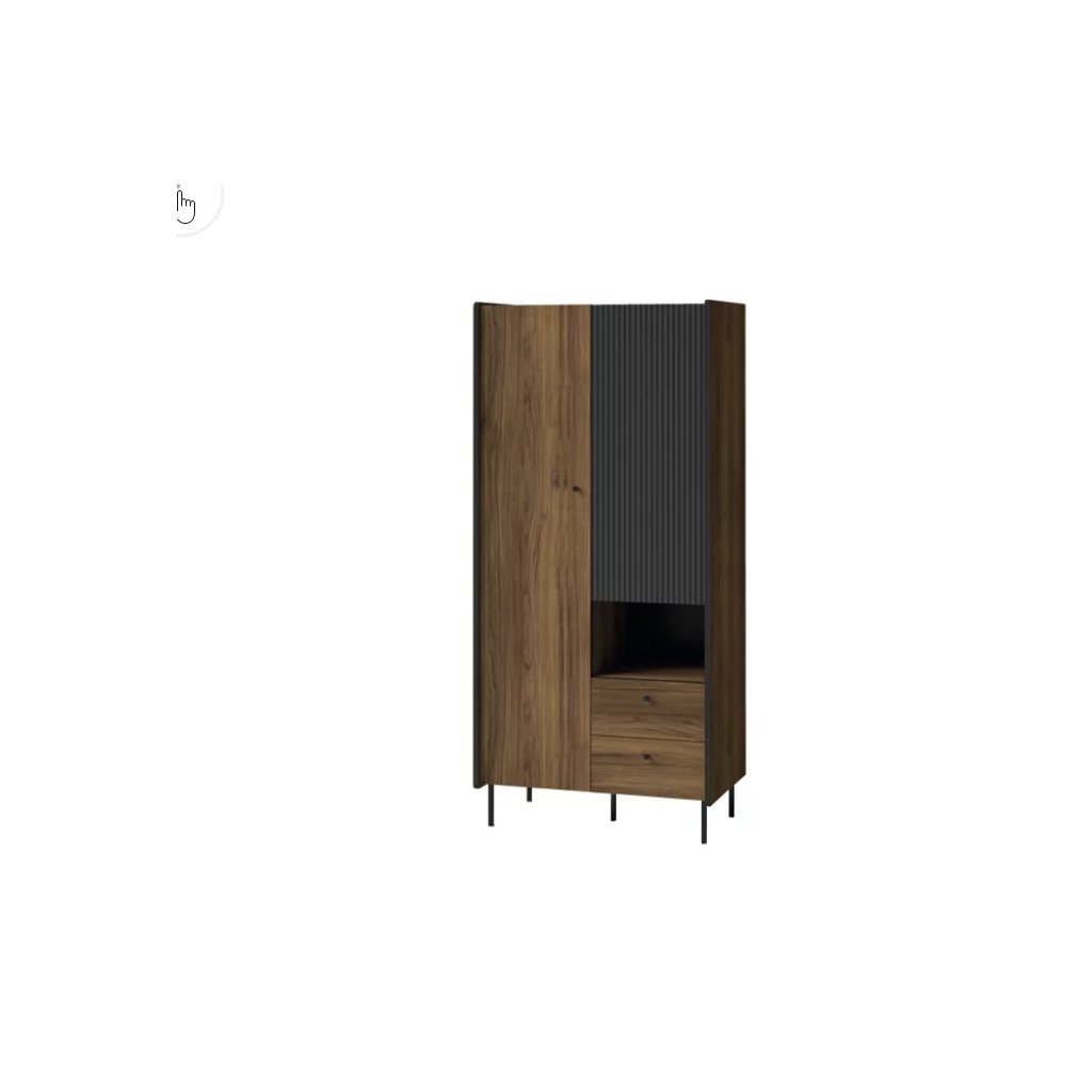 Az ESPRITE P1 gardrób elegáns bútordarabot képvisel modern dizájnnal, amely a meleg dió árnyalatot San Sebastiannal és matt feketével ötvözi. A gardrób jobb oldalán két praktikus fiók található az apróságok tárolására, az ajtó mögött pedig egy polc és egy ruhatartó. A stabilitásról 16 cm magas, tömör fém lábak gondoskodnak, amelyek egyben könnyű és légies megjelenést kölcsönöznek a szekrénynek.