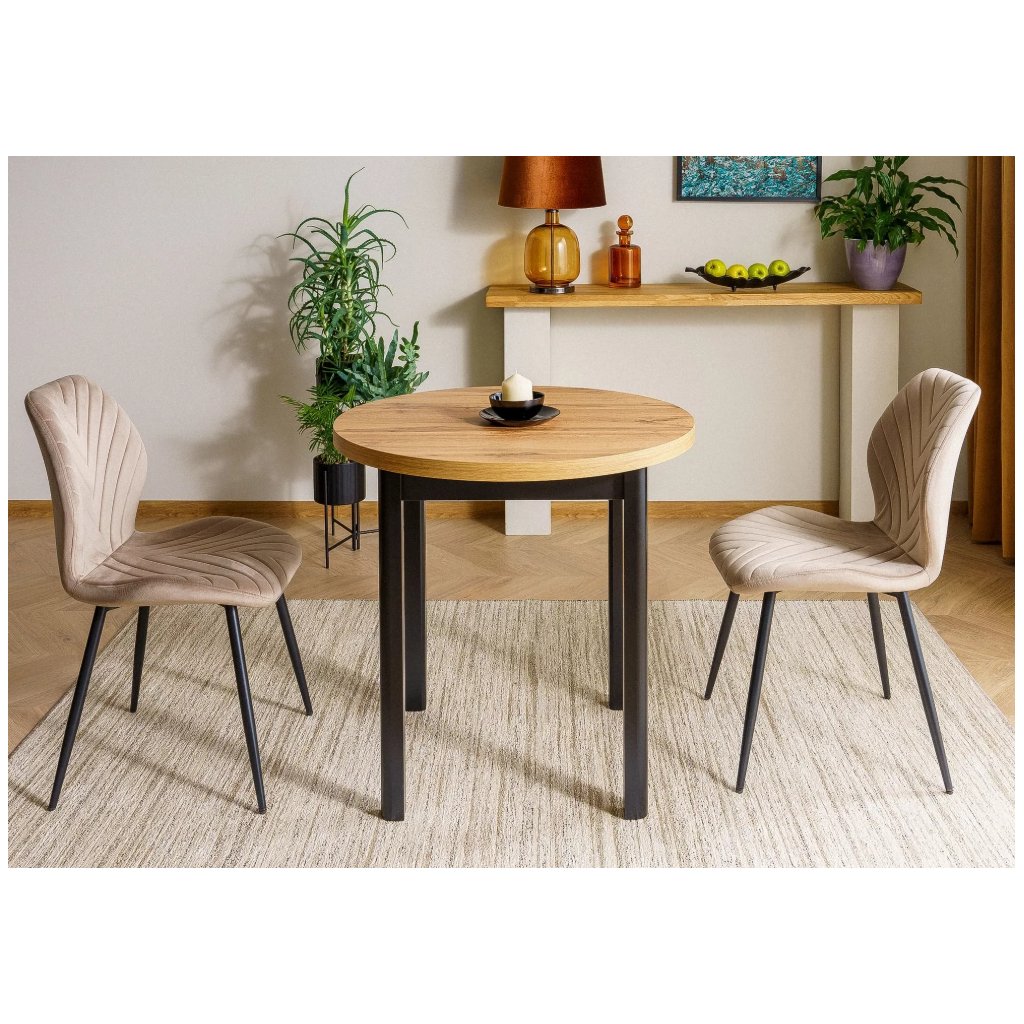 Az ADAM kerek étkezőasztal népszerű szín- és anyagkombinációban készült, és bármilyen belső térbe illik. Az ADAM étkezőasztal 80 x 80 cm méreteivel ideálisan illeszkedik az étkezőjébe, és tökéletes helyet biztosít négy családtag közös ebédjéhez.