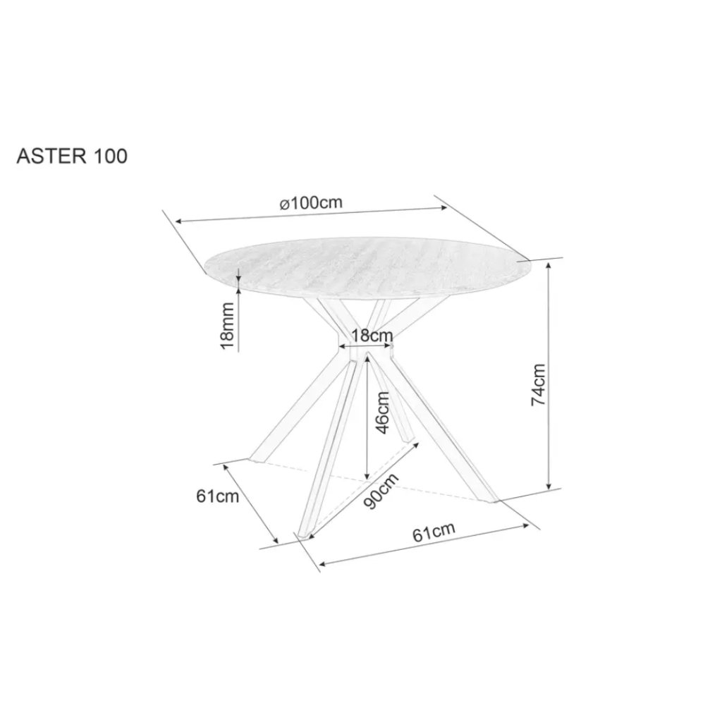Az ASTER étkezőasztal lekerekített formája nemcsak vizuális vonzerő, hanem praktikus megoldás is, amely lehetővé teszi a kényelmes beszélgetést és a közös pillanatok megélését étkezés közben. Az asztal elegáns fekete matt fém lábai nemcsak tartóelemként, hanem jellegzetes dizájnelemként is szolgálnak. Ez a stílusos étkezőasztal nemcsak a család és a barátok találkozóhelye, hanem egy műalkotás is, amely luxust és modern stílust visz otthonába. Az asztalt szétszerelt állapotban szállítjuk, így kisebb helyiségekbe vagy irodákba is alkalmas.