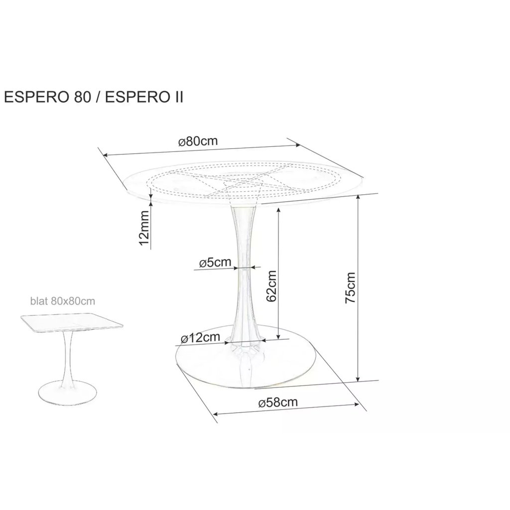 A praktikus ESPERO kerek étkezőasztal nemcsak elegáns dizájnt hoz étkezőjébe, hanem praktikusságot és tartósságot is. Az ESPERO asztalláb időtlen fekete matt kivitelben. Az étkezőasztalt szétszerelve szállítjuk. Az asztal nem csak étkezőbe, hanem bárba vagy irodába is alkalmas.