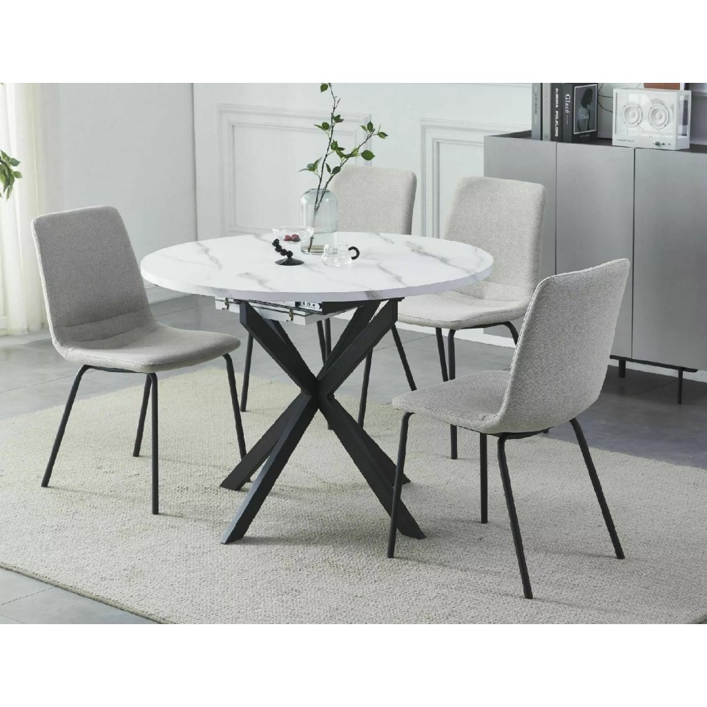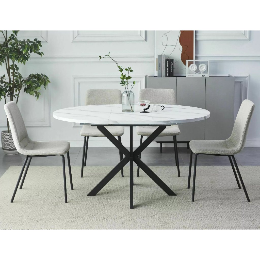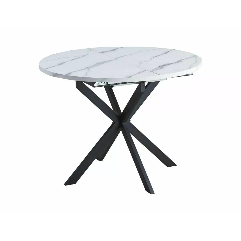 A kivételes GASTON étkezőasztal ötvözi a stílust és a praktikumot. A fehér dizájnnal ellátott étkezőasztal meleg és modern megjelenést kölcsönöz terének. Az asztal 135 cm-ig bővíthető. A fekete X-alakú lábakkal való kombináció nem csak vizuális élvezet, hanem az asztal stabilitását és tartósságát is biztosítja. Az X forma modern és innovatív megjelenést kölcsönöz az asztalnak, amely a könnyedség és az elegancia benyomását kelti.