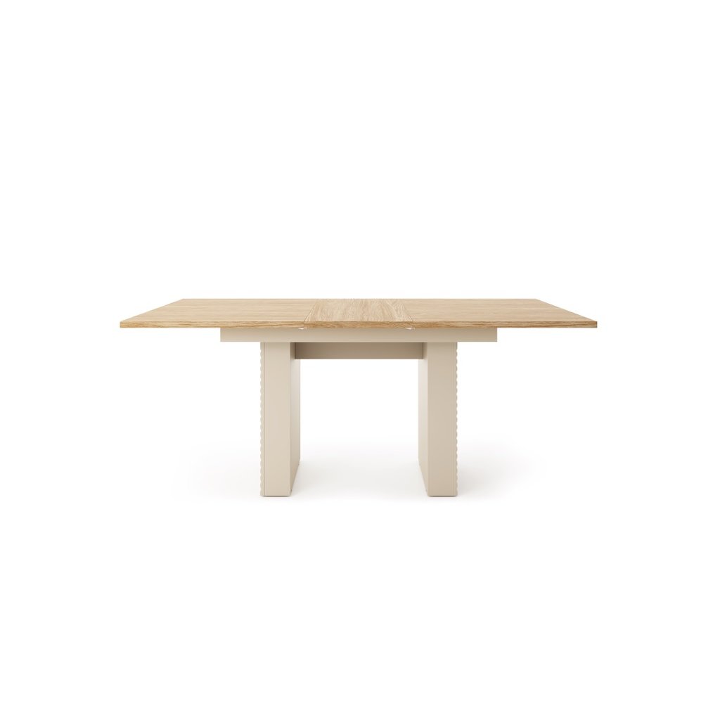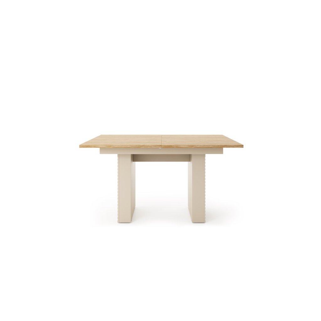 A TIALA TI6 étkezőasztal Egy modern bútordarab, amely ötvözi az eleganciát, a funkcionalitást és az időtlen dizájnt . A világos színek, a natúr fa és a finoman barázdált előlapok könnyedséget, melegséget és egy csipetnyi eredetiséget kölcsönöznek a belső térnek. A magas lábaknak köszönhetően szellősnek tűnik, és az egész tér optikailag tágasabb és rendezettebb. Az asztal 181,5 cm szélességig bővíthető.