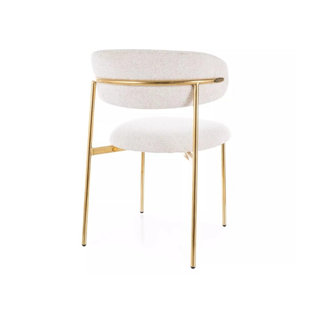 A szék gyönyörű arany színű fém lábakon áll, amelyek stabilitást és erőt adnak. A kárpit kiváló minőségű szövetből készült , amely ellenáll a kopásnak, foltosodásnak és kellemes tapintású . Rendszeresen porszívózza fel a szék teljes felületét, hogy megakadályozza a por és szennyeződés felhalmozódását. Rendszeresen törölje le a széket egy nedves ruhával , és szükség szerint vigyen fel enyhe mosószert.