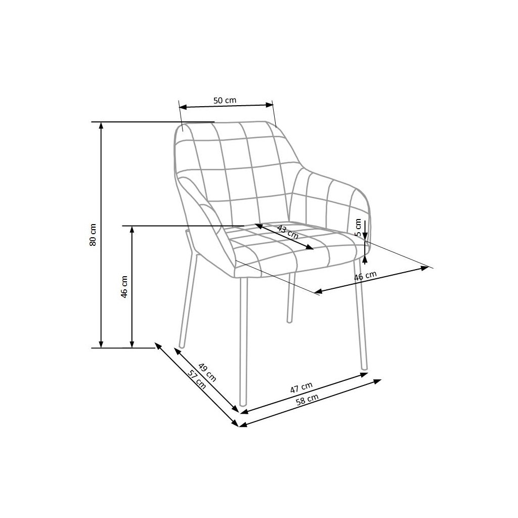 A modern és luxus KAI K306 szék egyediséget és dizájnt kölcsönöz étkezőjének vagy konyhájának. A modern formájú szerkezet krómacélból készült, arany színű. A kényelmes ülés érdekében az ülőfelület puha bársonyhuzattal van kárpitozva. A KAI K306 étkezőszék alkalmas konyhába vagy étkezőbe, de étterembe vagy recepcióra is.