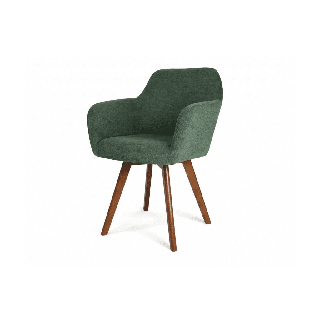 Az OLIVIA dizájner étkezőszék eredeti zöld árnyalatában melegséget, eleganciát és időtlen stílust visz a belső térbe. Puha kárpitozása és tömör tölgyfa lábai harmonikus kontrasztot alkotnak, amely tökéletesen illeszkedik a modern, skandináv és természetes stílusú enteriőrökbe. Az ergonomikusan formázott háttámla és az integrált karfák magas kényelmet biztosítanak, legyen szó családi ebédekről, üzleti megbeszélésekről vagy hosszabb estékről az asztalnál. A kellemesen párnázott ülőfelület hosszú távú használat esetén is biztosítja a kényelmet , így az OLIVIA szék ideális választás étkezőbe, nappaliba és dolgozószobába. A tömör tölgyfából készült stabil lábak kivételes szilárdságot, tartósságot és természetes megjelenést garantálnak .