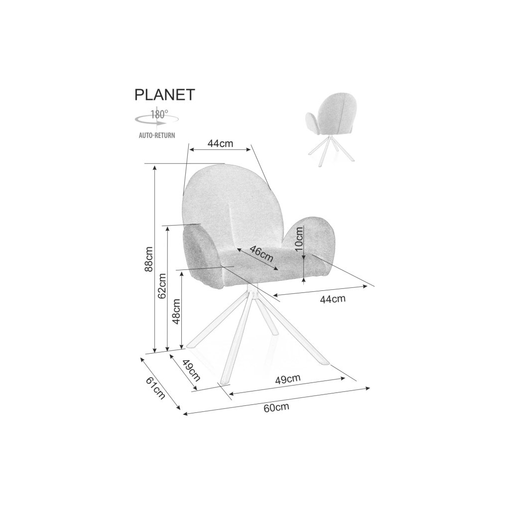 A PLANET RAVEN szék kiváló minőségű és tartós anyaggal kárpitozott. Ugyanakkor a szék egy masszív fémszerkezeten áll, amely stabilitást biztosít, és lehetőséget ad a szék 180°-os elforgatására is, az automatikus visszaállítás funkcióval . Tehát ne habozzon tovább, és kényeztesse magát tökéletességgel és eleganciával a PLANET RAVEN étkezőszék formájában.
