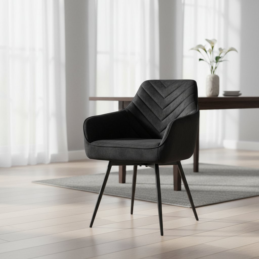 A nagyszerű SERVIO VELVET étkezőszék eleganciát visz étkezőjébe vagy irodájába. A steppelt háttámlának és a kényelmes karfáknak köszönhetően garantáltan tökéletes ülőhelyet és ellazulást biztosít. Az ülés rendkívül kényelmes a zsákrugóknak köszönhetően. További nagy előnye az automatikus visszatérési funkció, amely egy 180 fokban elforgatható ülést biztosít, amely visszatér az eredeti helyzetébe. A szék lábai fémből készültek, elegáns fekete színben. Tökéletesen illeszkedik bármilyen modern enteriőrbe .