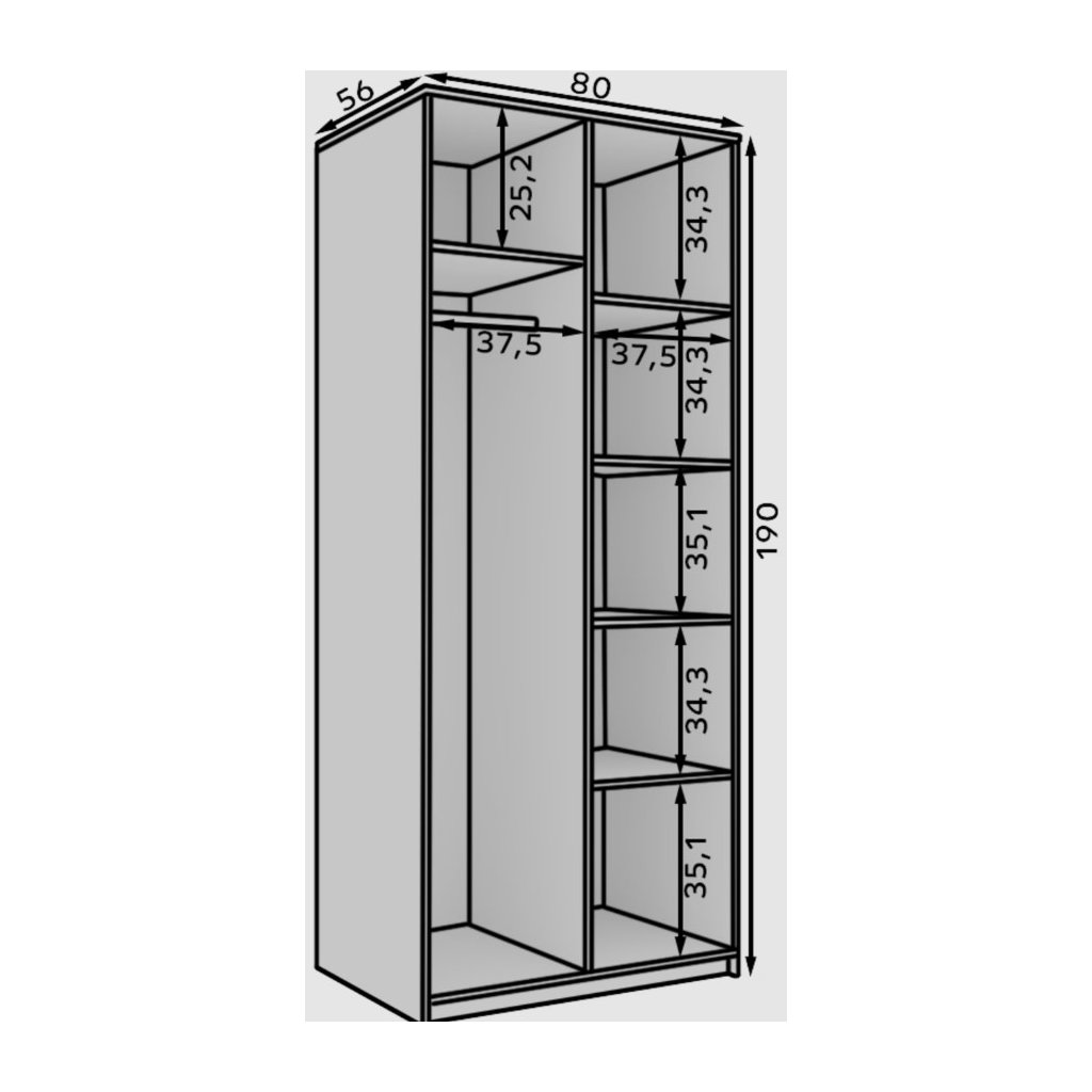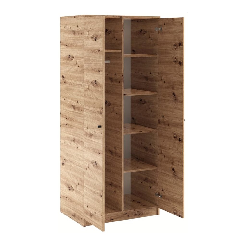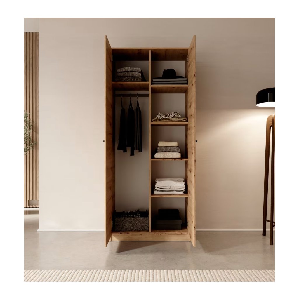 A praktikus Evi 09 gardrób az elegáns minimalista dizájnt magas funkcionalitással ötvözi. Letisztult szettai és univerzális megjelenése ideális kiegészítőjévé teszik különféle típusú belső terek számára. A szekrény praktikus elemekkel van felszerelve , mint például polcok és akasztórúd, amelyek elegendő tárolóhelyet biztosítanak a dolgok hatékony rendszerezéséhez. Időtlen kialakításának köszönhetően tökéletesen illeszkedik bármely helyiségbe - legyen az nappali, hálószoba vagy iroda.
