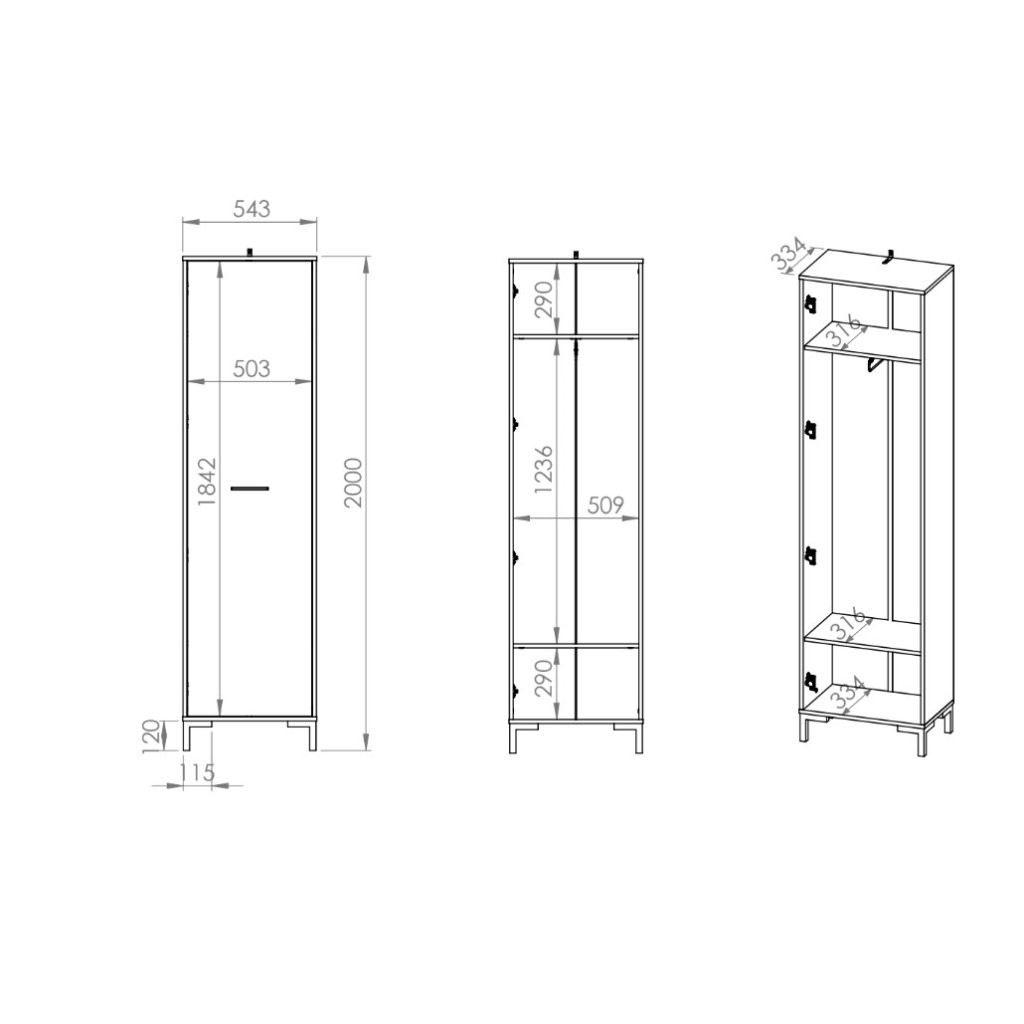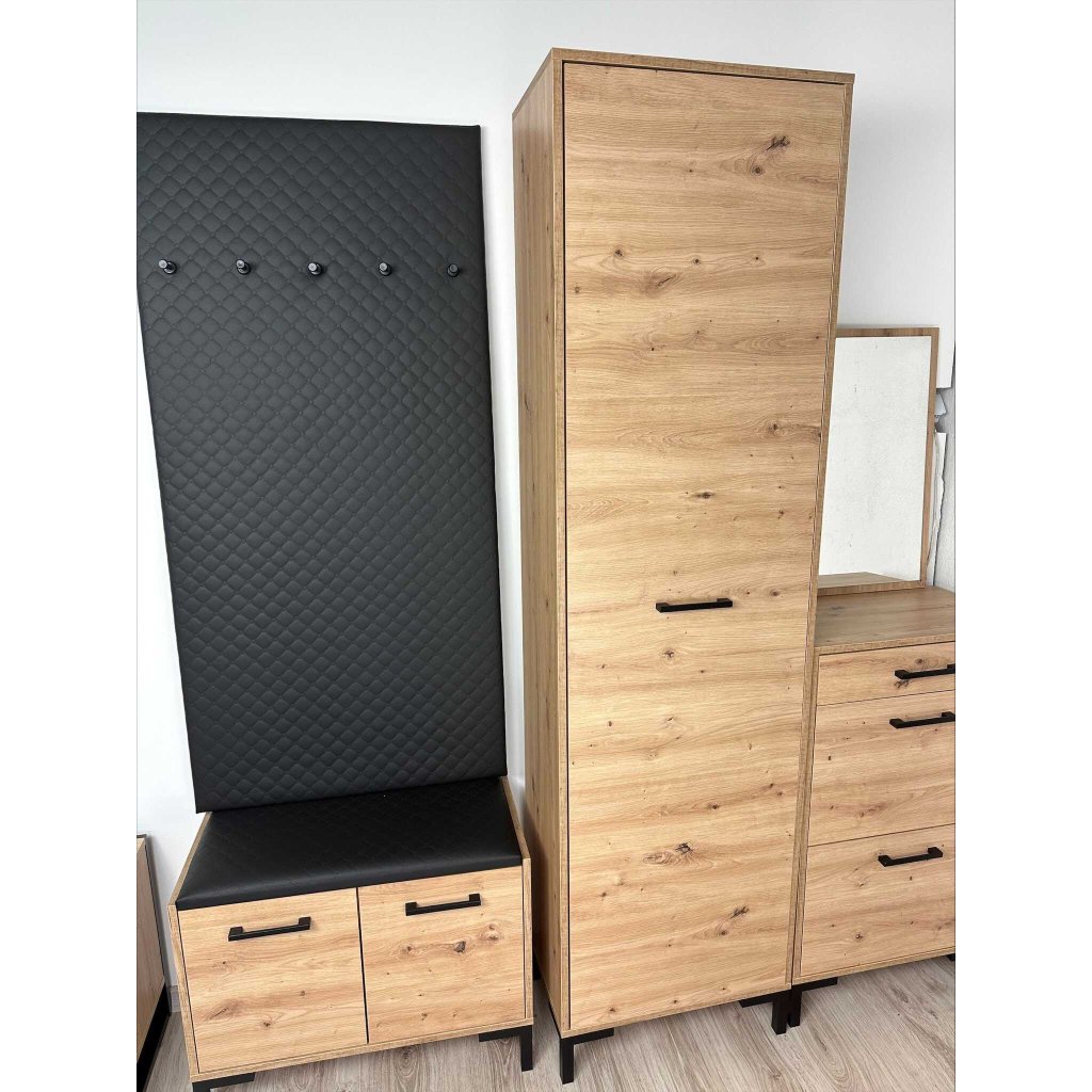 Az EVION gardróbszekrény ideális megoldás kisebb terekbe, ahol nincs hely nagyméretű bútoroknak. A teljes kollekció könnyen kombinálható a népszerű színdizájnnak köszönhetően, és tökéletes harmóniát teremt. A magasabb fekete lábak könnyedebbé teszik a teljes kollekciót , és a fekete fogantyúkkal együtt eredetiséget kölcsönöznek az egyes elemeknek. Az EVION 01 gardróbszekrény egyetlen ajtóval, kihúzható akasztóval és két polccal rendelkezik; az ABS éleket a mindennapi használat során értékelni fogja.