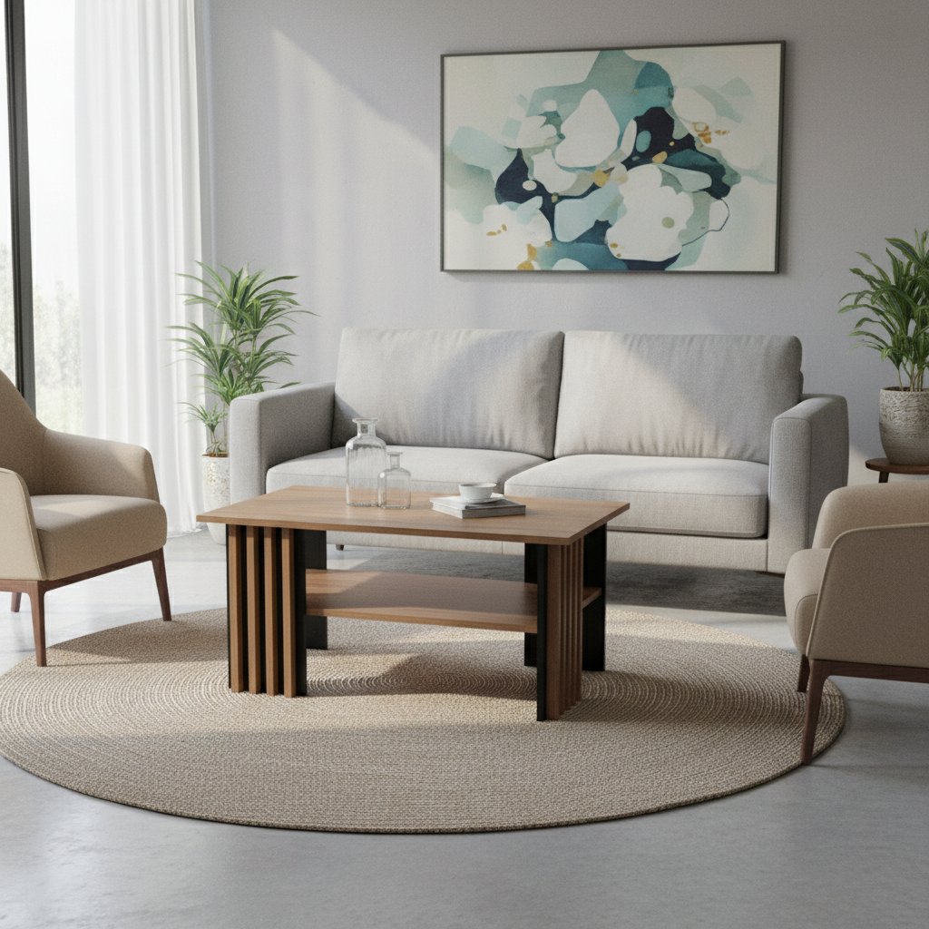 A modern EVITA dohányzóasztal a megfelelő választás minden olyan háztartás számára, amely a modern és praktikus darabokat részesíti előnyben. Az EVITA dohányzóasztal stílusos kivitelben készült, lécekkel, amelyek jelenleg a szezon slágere. Az EVITA konferenciaasztal asztallapja alatt praktikus polc található.