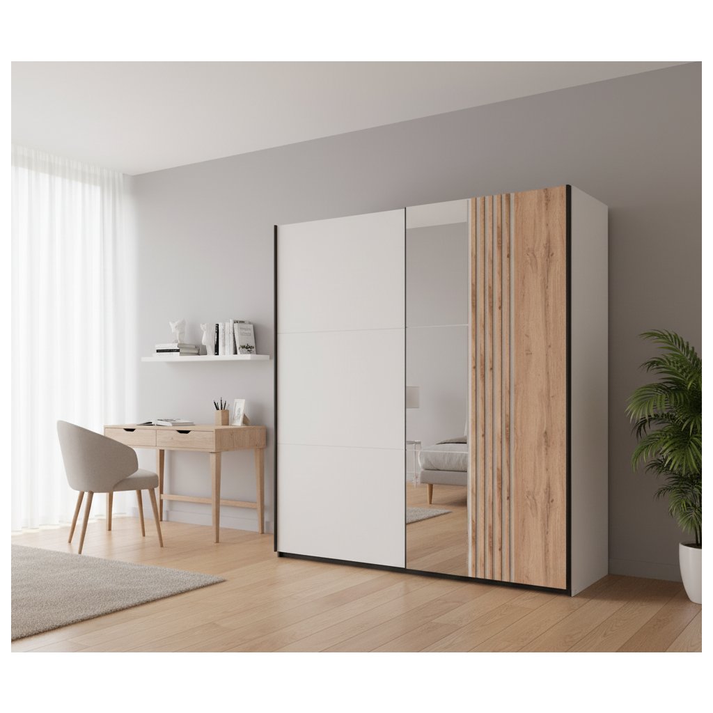 A modern EVORA gardrób nemcsak időtlen színvilágot képvisel, hanem tökéletességet és eredetiséget is. A gardrób anyaga kiváló minőségű, sérülésálló , ami hosszú élettartamot és az Ön elégedettségét garantálja. A gardrób praktikus oldala nemcsak a tükrös tolóajtókban rejlik, hanem a gardrób tárolórekeszének kivételes kialakításában is. Kényeztesd magad a rendkívüli szettvezetéssel az EVORA gardróbnak köszönhetően, és biztosan nem fogod megbánni.
