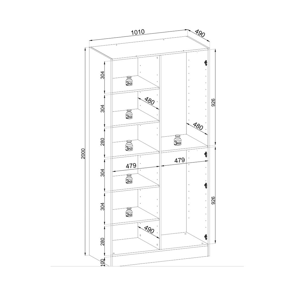 - polc teherbírása: 2-3 kg