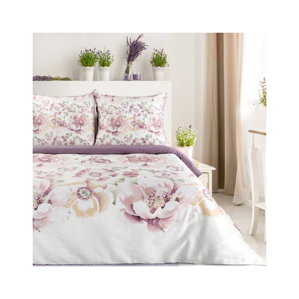 Francia ágynemű TAVASZ 27 | fehér/lila 220 x 200 cm