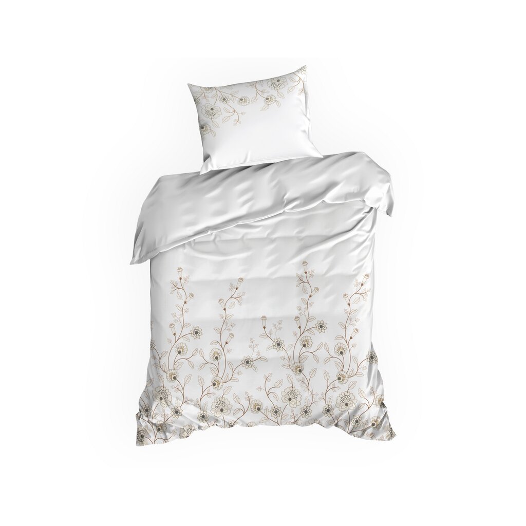 Nyomtatott pamut szatén ágyneműgarnitúra Szélesség: 220 cm, Hossz: 200 cm, Szín: fehér, Súly: 115 GSM, Összetétel: szatén, 100% pamut. A csomag tartalma 1 db 220 x 200 cm, 2 db 70 x 80 cm.
