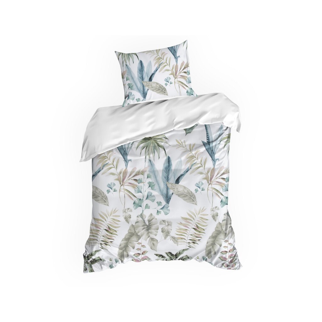 Nyomtatott pamut szatén ágyneműgarnitúra Szélesség: 220 cm, Hossz: 200 cm, Szín: zöld, Súly: 115 GSM, Összetétel: szatén, 100% pamut. A csomag tartalma 1 db 220 x 200 cm, 2 db 70 x 80 cm.