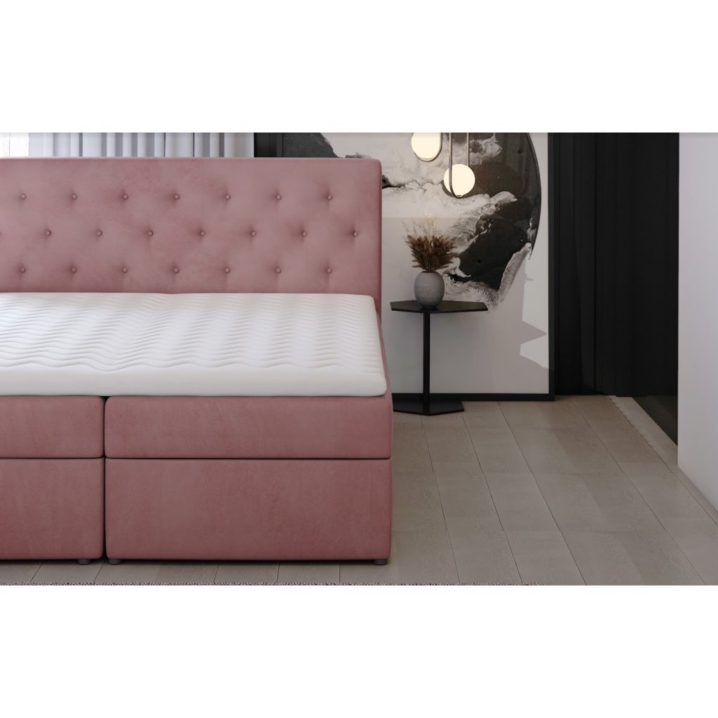 Az ellenállhatatlan BOXSPRING ágy minőségi anyagokból készült. A LOREE franciaágy érdekes, steppelt fejtámlával rendelkezik , amely kellő kényelmet biztosít olvasás közben. Az ágy rugós matraccal ellátott tárolóhellyel rendelkezik, egyoldalas és hipoallergén. A matrac 20 cm magas, mindkét oldalán T25 habszivacs rétegekkel. Kényeztesd magad a stílusos és egyedi LOREE franciaággyal .