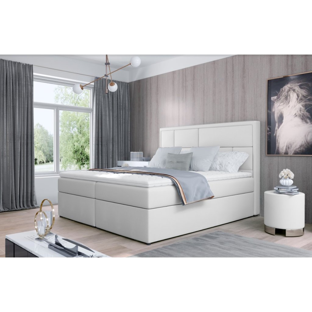 Az ellenállhatatlan BOXSPRING ágy minőségi anyagokból készült. A MERON franciaágy érdekes, steppelt fejtámlával rendelkezik, amely kellő kényelmet biztosít olvasás közben. Az ágy rugós matraccal ellátott tárolóhellyel rendelkezik, egyoldalas és hipoallergén. A matrac 20 cm magas, mindkét oldalán T25 habszivacs rétegekkel. Kényeztesd magad a stílusos és egyedi LOREE franciaággyal .