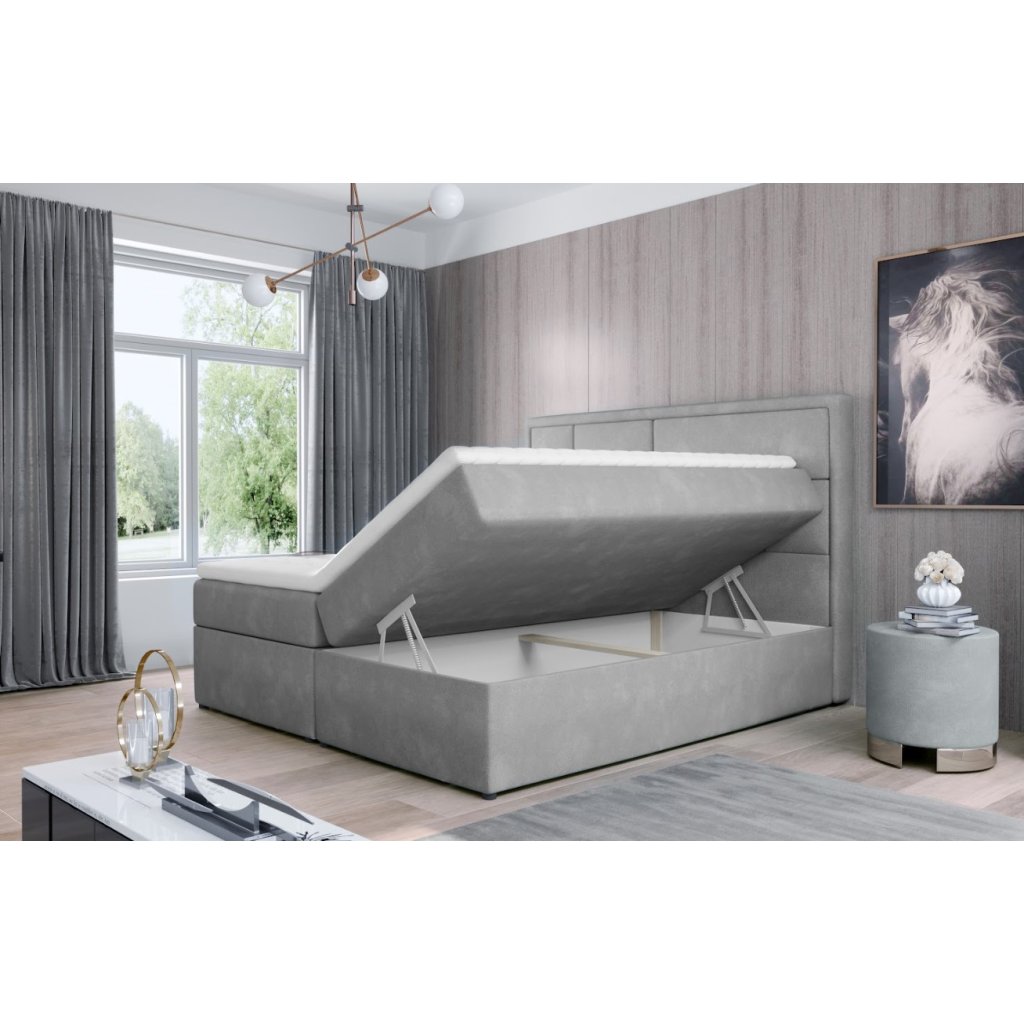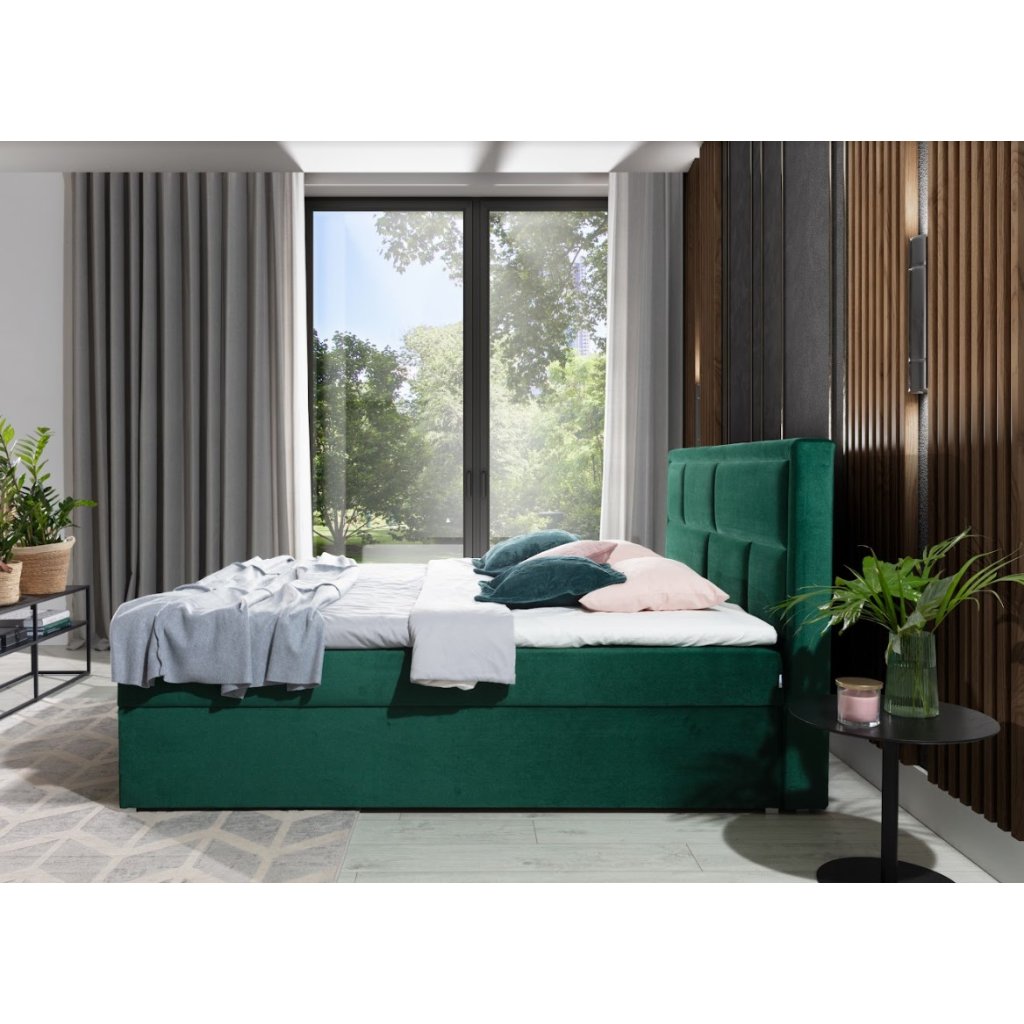 Az ellenállhatatlan BOXSPRING ágy minőségi anyagokból készült. A MERON franciaágy érdekes, steppelt fejtámlával rendelkezik, amely kellő kényelmet biztosít olvasás közben. Az ágy rugós matraccal ellátott tárolóhellyel rendelkezik, egyoldalas és hipoallergén. A matrac 20 cm magas, mindkét oldalán T25 habszivacs rétegekkel. Kényeztesd magad a stílusos és egyedi LOREE franciaággyal .