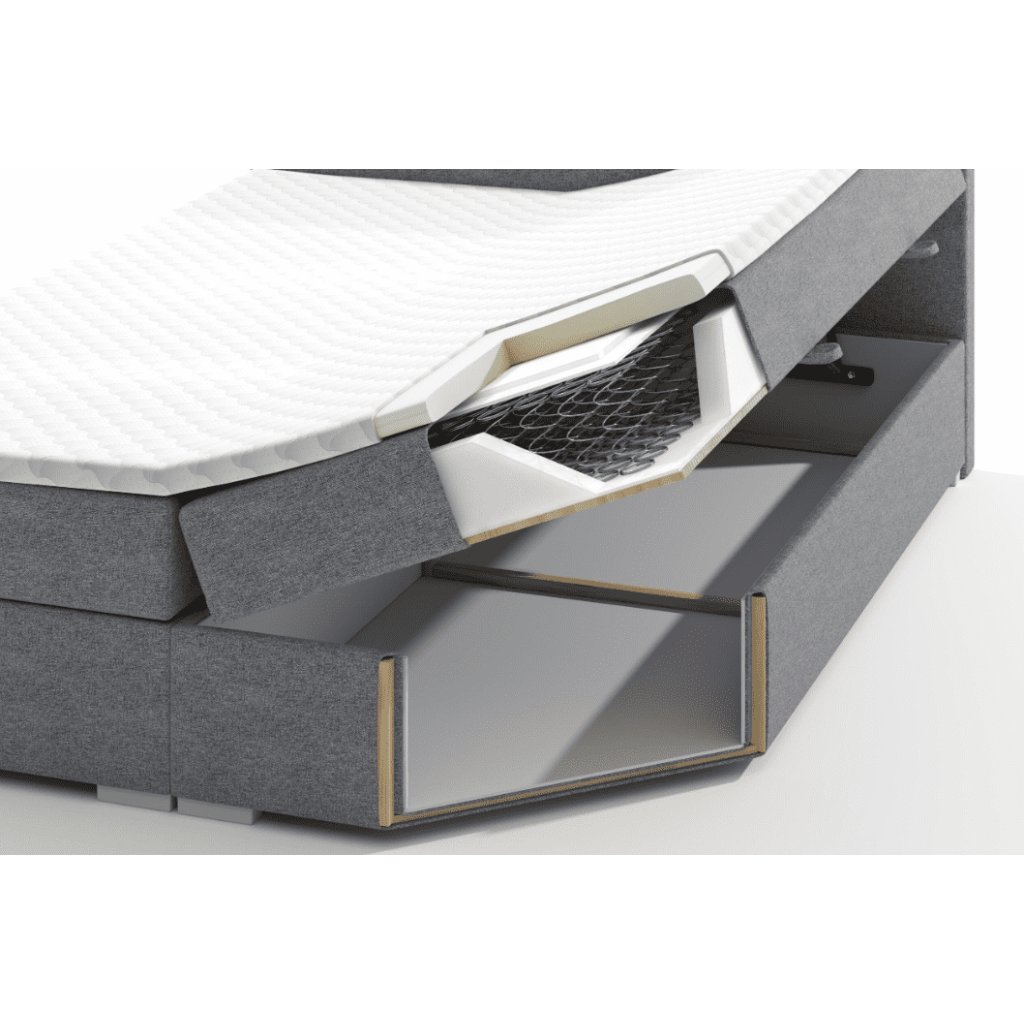 A bársonyos luxus és a praktikus dizájn egyben ötvözve ez a SOFIA dobozrugós kárpitozott franciaágy tárolóhellyel . Az Elvisia ágykárpit kiváló minőségű anyagokból készült, amelyek kiegészítik a hangulatos megjelenést és hangulatot adnak a belső térnek. A rugós rugós rendszer egy szilárd alapdobozra helyezett matracból áll, amely optimális testtartást biztosít, és egy 4 cm vastag felső felsőrész biztosítja a hibátlan alvást minden éjszaka. Az ágyban található tárolóhely praktikus megoldást kínál szezonális cikkek, ágyneműk vagy egyéb apróságok tárolására. Teremtse meg saját kényelmét és stílusát a tárolóhellyel rendelkező, luxus SOFIA rugós ággyal .