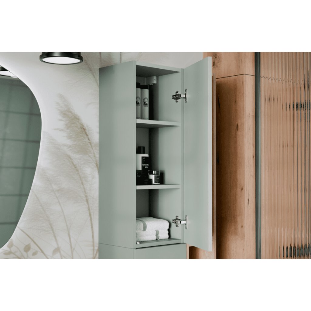 Tegye teljessé fürdőszobáját egy praktikus és dizájntudatos elemmel. Az ASTER Green 83-15-80 SM függesztett nyitott polc modern cremona tölgyfa dekorral az esztétika, a tárolóhely és a helytakarékosság ideális kombinációját kínálja. Függőleges kialakításának köszönhetően a polc kisebb fürdőszobákba is ideális, ahol fontos minden centiméter hatékony kihasználása. A minimalista szettak hangsúlyozzák a bútor modern jellegét. A felületkezelést úgy tervezték, hogy ellenálljon a nedvességnek és a fürdőszobai környezetben való mindennapi használatnak.